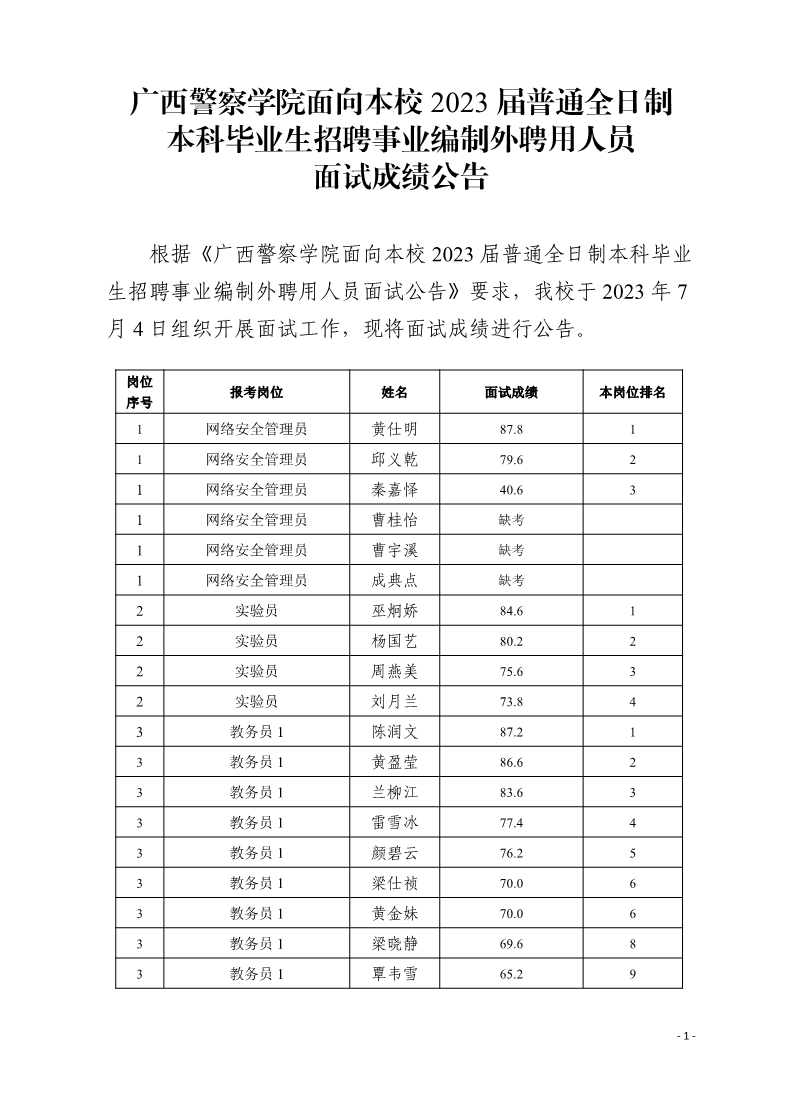 beat365唯一官方网站面向本校2023届普通全日制本科毕业生招聘事业编制外聘用人员面试成绩公告