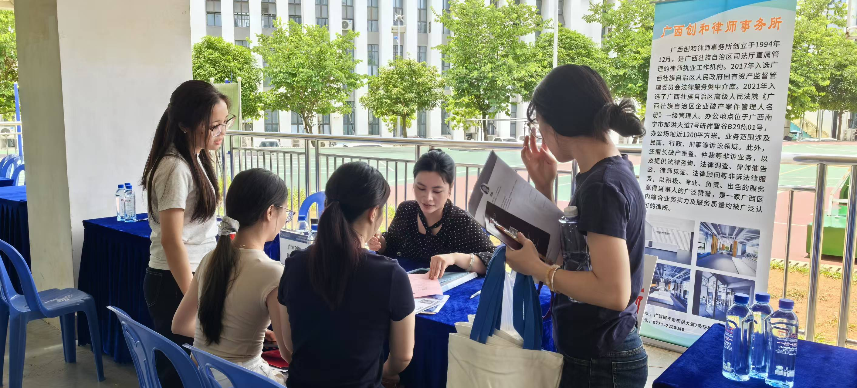 此次校园招聘会得到了广西壮族自治区律师协会大力支持,协会秘书长农峰华亲临招聘会现场指导工作。学院高度重视此次招聘会,学院班子全体成员深入现场,与招聘单位负责人和求职学生亲切交流,详细了解用人单位的招聘需求和人才培养建议,希望为毕业生提供更多优质的就业机会,并鼓励学生积极投递简历,把握就业机会、积极应聘。