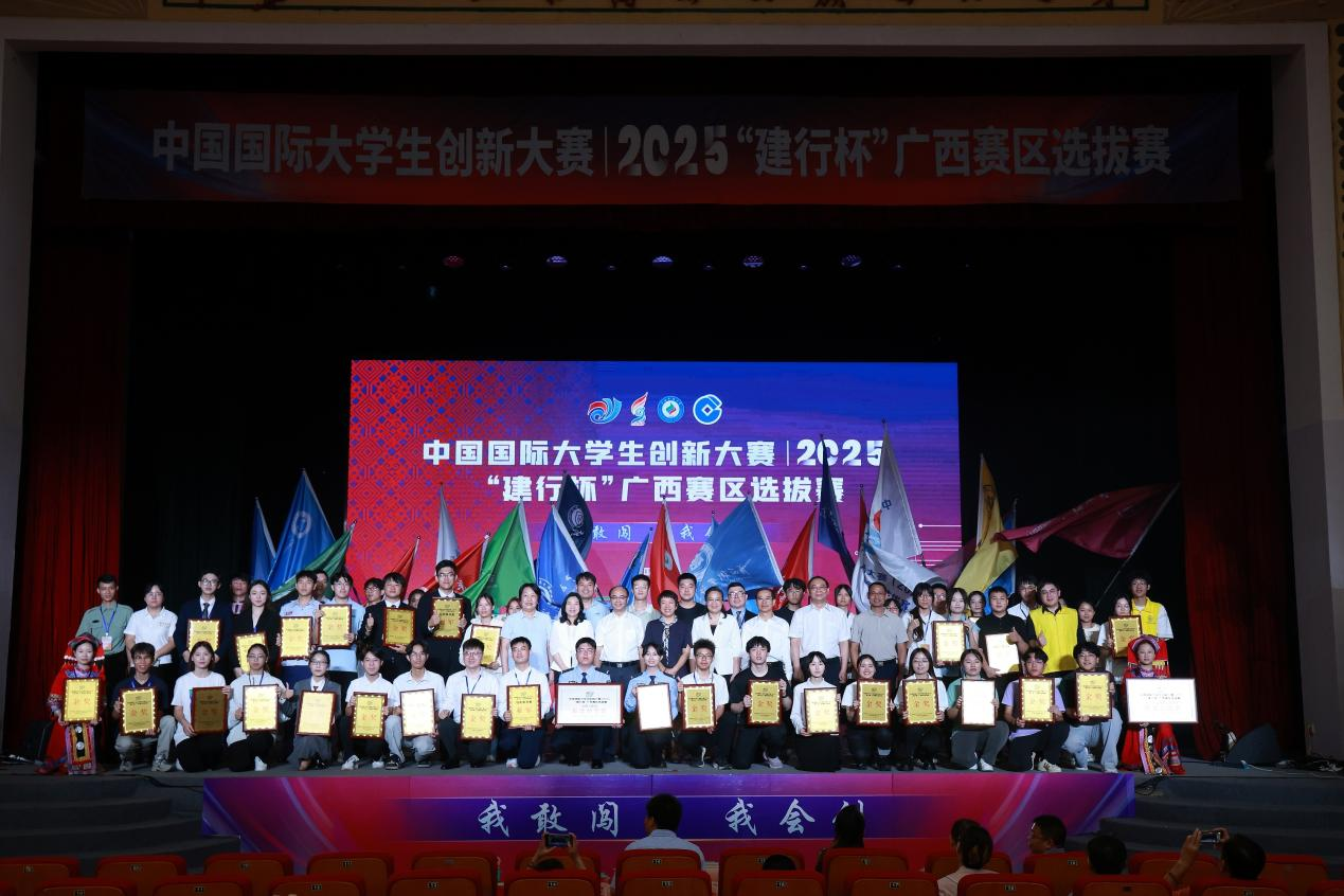 《南疆之瞳——多模态AI融合三维现场重建系统领航者》在学院领导和老师们的带领和指导下,成为学校唯一一支进入金奖排位赛的队伍,在与研究生和博士生项目激烈竞争下,最终荣获第9名的好成绩,在广西52万项目中排名第9,创下beat365唯一官方网站历史以来最好成绩。团队负责人丁乐、团队成员陈淑媛代表上台领奖。目前《南疆之瞳——多模态AI融合三维现场重建系统领航者》成功进入金种子训练营,有望冲击国赛。