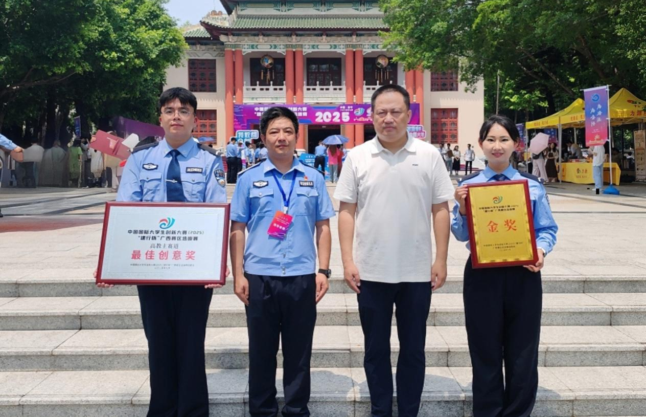 2025年7月18日,2025中国国际大学生创新创业大赛“建行杯”广西区赛选拔赛在广西民族大学相思湖校区完美落幕,法学院共派出两支队伍参加比赛。《南疆之瞳——多模态AI融合三维现场重建系统领航者》《蛛网维安——面向犯罪的动态图谱智慧警务系统》两个项目在本次大学生创新创业大赛上分夺获两项金奖,同时《南疆之瞳——多模态AI融合三维现场重建系统领航者》荣获区赛“最佳创意奖”。比赛过程中展现了我院学子敢闯敢想的创新思维与肯干能干的过硬本领。此次法学院比赛成果得到校领导蒋超副校长的肯定。