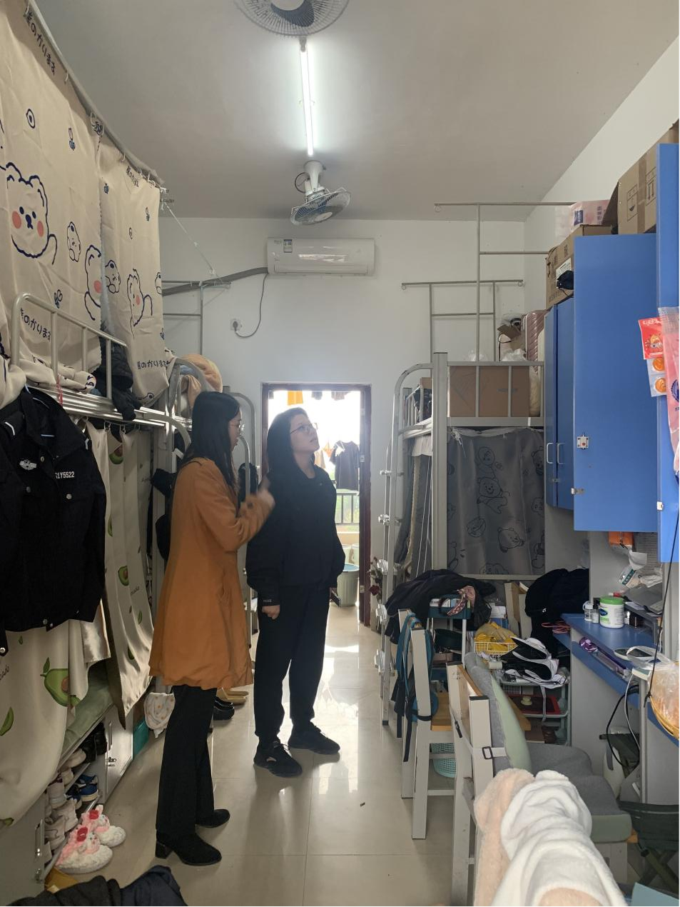 (蔡明丹副院长、陈先玥老师检查学生宿舍)