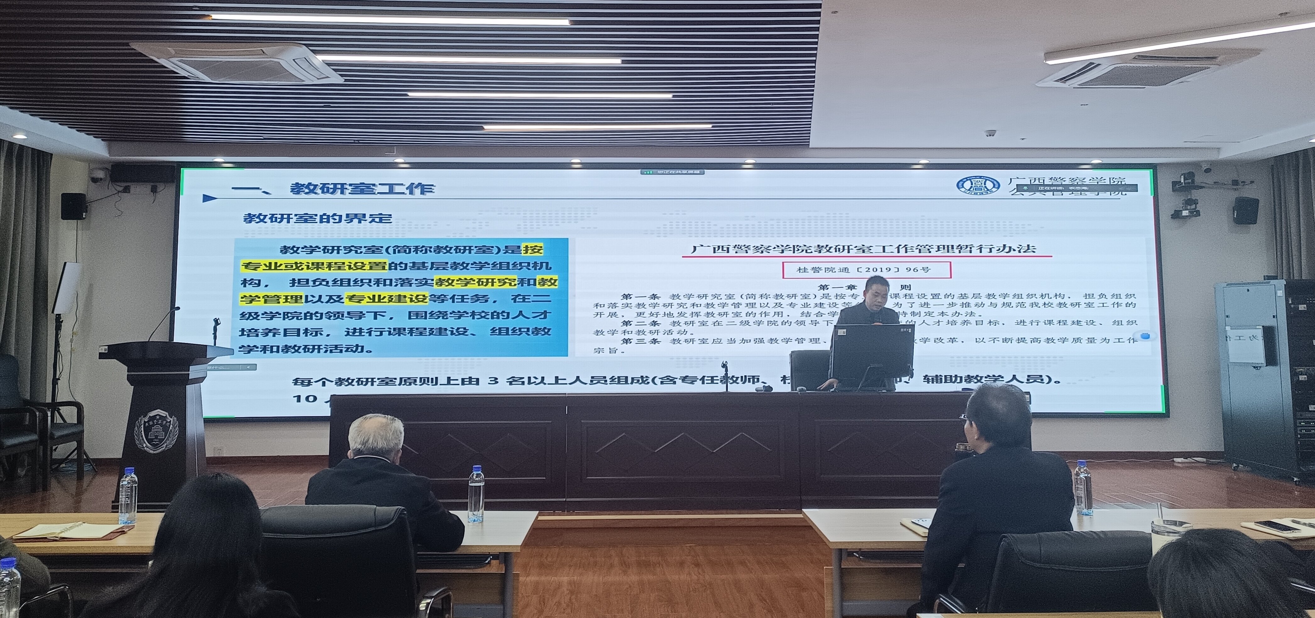 为推进我院一流本科课程培育与建设,提升课程建设整体质量与水平,3月26日下午,公共管理学院于五合校区2号实训楼401会议室召开一流本科课程建设专题培训会。培训会由学院院长黄朝成主持,副院长蔡明丹主讲。出席会议的有党总支书记樊宗高、副书记李海波、副院长农忠海、副院长谭玉龙,学院全体教职工、金通公司驻校教师参加会议。