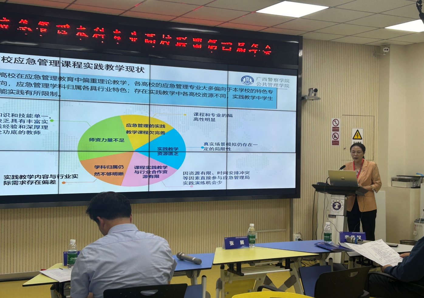 会议分论坛上,围绕会议主题设置应急管理专业建设、应急管理产教融合、应急管理青年学者、基层应急管理实践、江苏省应急管理学院建设等五个平行分论坛,180余位专家学者、地方领导、企业高管及优秀研究生代表等围绕各分论坛主题展开了深入研讨。在应急管理专业建设分论坛上,谭玉龙副院长作了题为《情景模拟教学法在<公共危机现场管理>课程教学中的应用》的报告,从情景模拟教学法的基本内涵、与《公共危机现场管理》课程教学的契合性分析、在《公共危机现场管理》课程教学中的具体应用、应用中应注意的事项四个部分展开汇报。赵华老师在应急管理产教融合分论坛上作了题为《大应急大安全背景下应急管理专业课程实践教学体系的探索与实践》的报告,“大安全大应急”框架下的应急管理人才培养目标、应急管理课程实践教学现状、应急管理专业实践教学模式的构建、我院应急管理专业课程实践教学的实践经验等方面展开了分享。两位老师的报告获得了与会专家学者的好评。