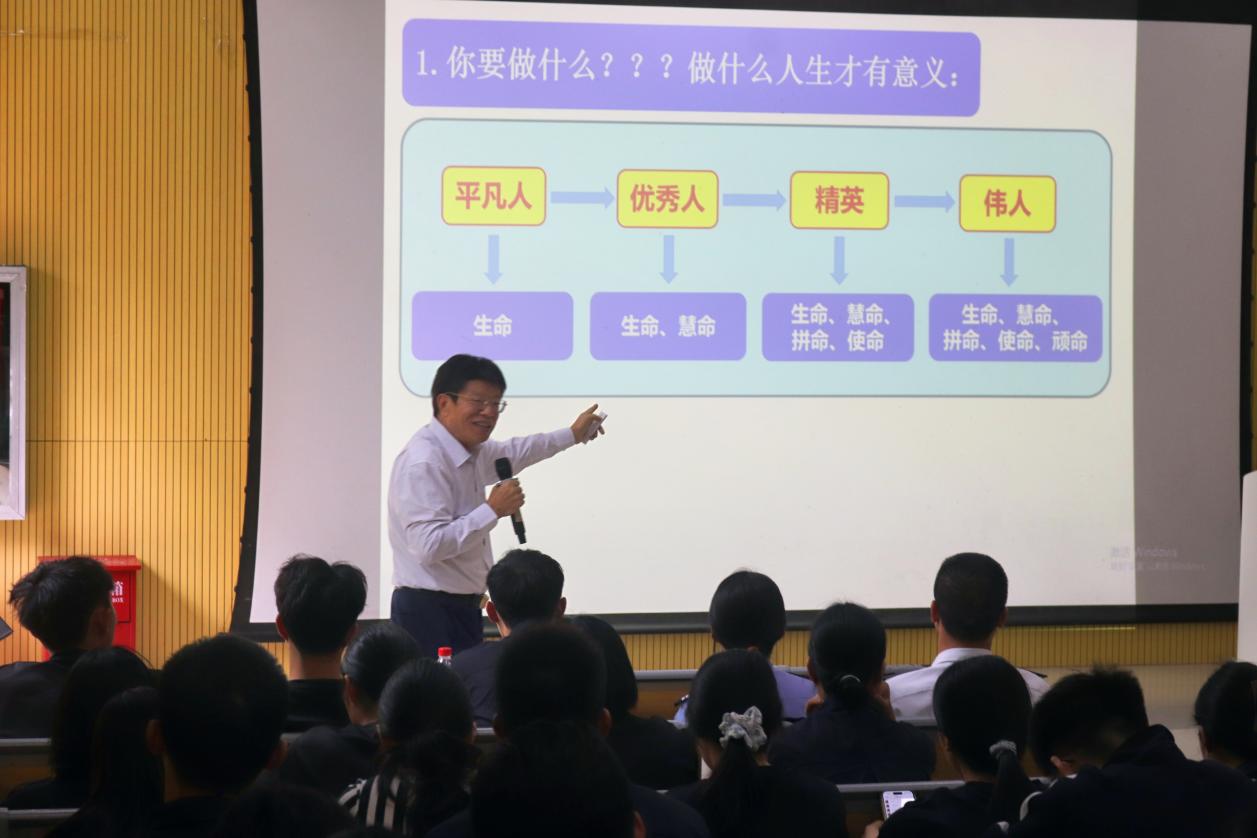 会议伊始,覃老师从三个角度展开讲座。一是思考人生、追问人生,他指出学生应有清晰的人生规划思路,并且要明白做什么人生才有意义,从而鼓励学生们更好地规划未来方向。二是规划人生、成就人生,覃老师通过多方面的分析,从立志气、养大气、有底气、长骨气四个方面,让学生们懂得如何设定合理目标,避免盲目前行,使计划更有针对性。三是奋斗人生、圆梦人生,覃老师用一道数学题引出了一个结论:“努力了不一定成功,但是不努力,连门都没有”。最后覃老师以一段宣誓结尾,他指出学生们要做一个有志气的人、做一个有骨气的人、做一个有大气的人、做一个有底气的人,并鼓励听众积极主动地去追求自己的理想生活。专家由浅入深地阐述了人生规划的重要性,并结合大量实例讲解如何制定有效规划,这次讲座为同学们在规划人生道路上点亮了一盏明灯,有望助力同学们成就精彩人生。
