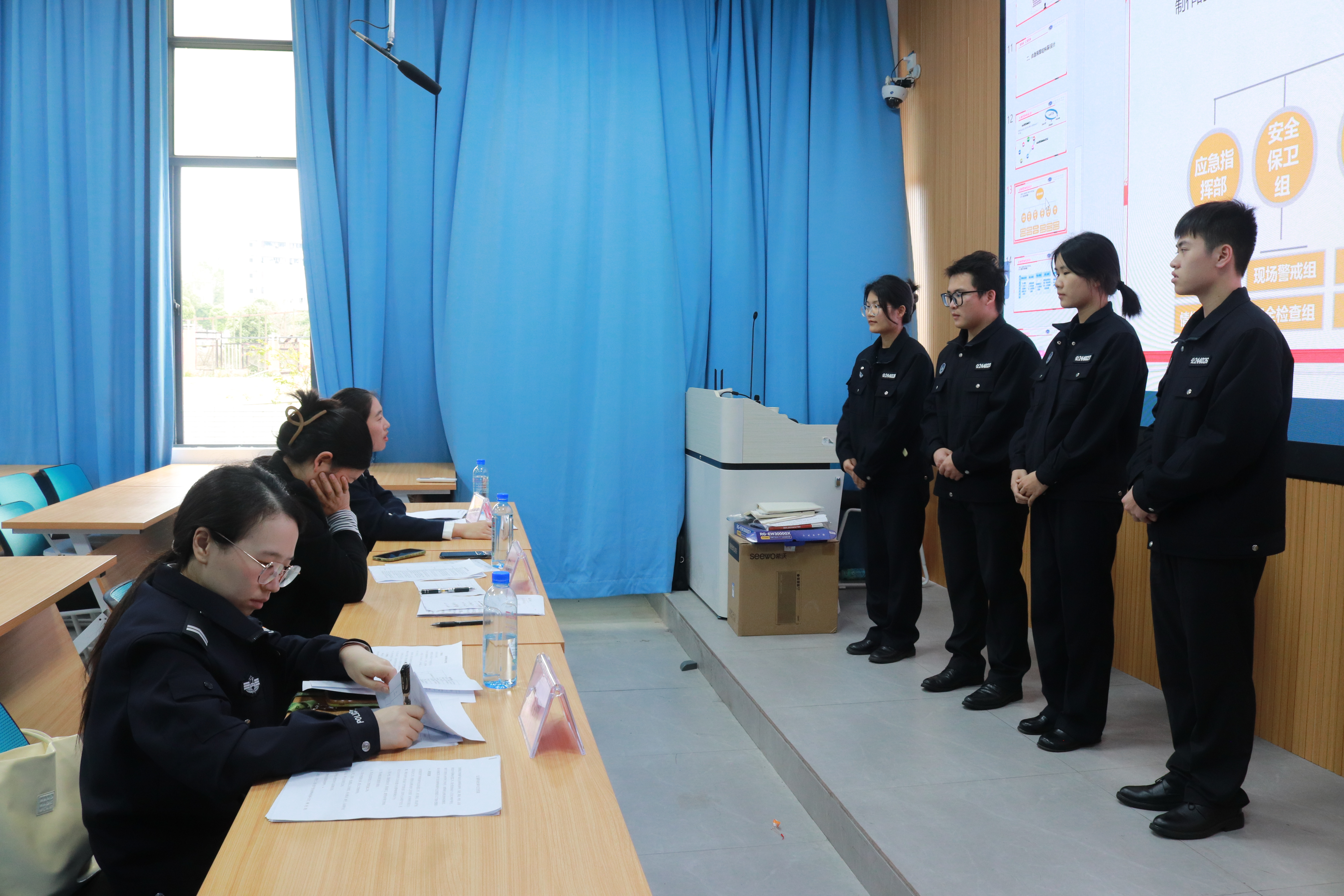 初赛于2025年3月4日拉开帷幕,包括制作情景演练视频和理论知识考试两个部分。首先是赛前各队伍围绕社会安全事件的演练阶段,自行设计情景演练并拍摄剪辑,视频内容形式丰富多样,充分展现了各比赛团队对社会安全事件的深刻理解。随后,理论知识考试通过智慧树平台线上进行,选手需在规定时间内完成作答,检验应急知识储备与应用能力。