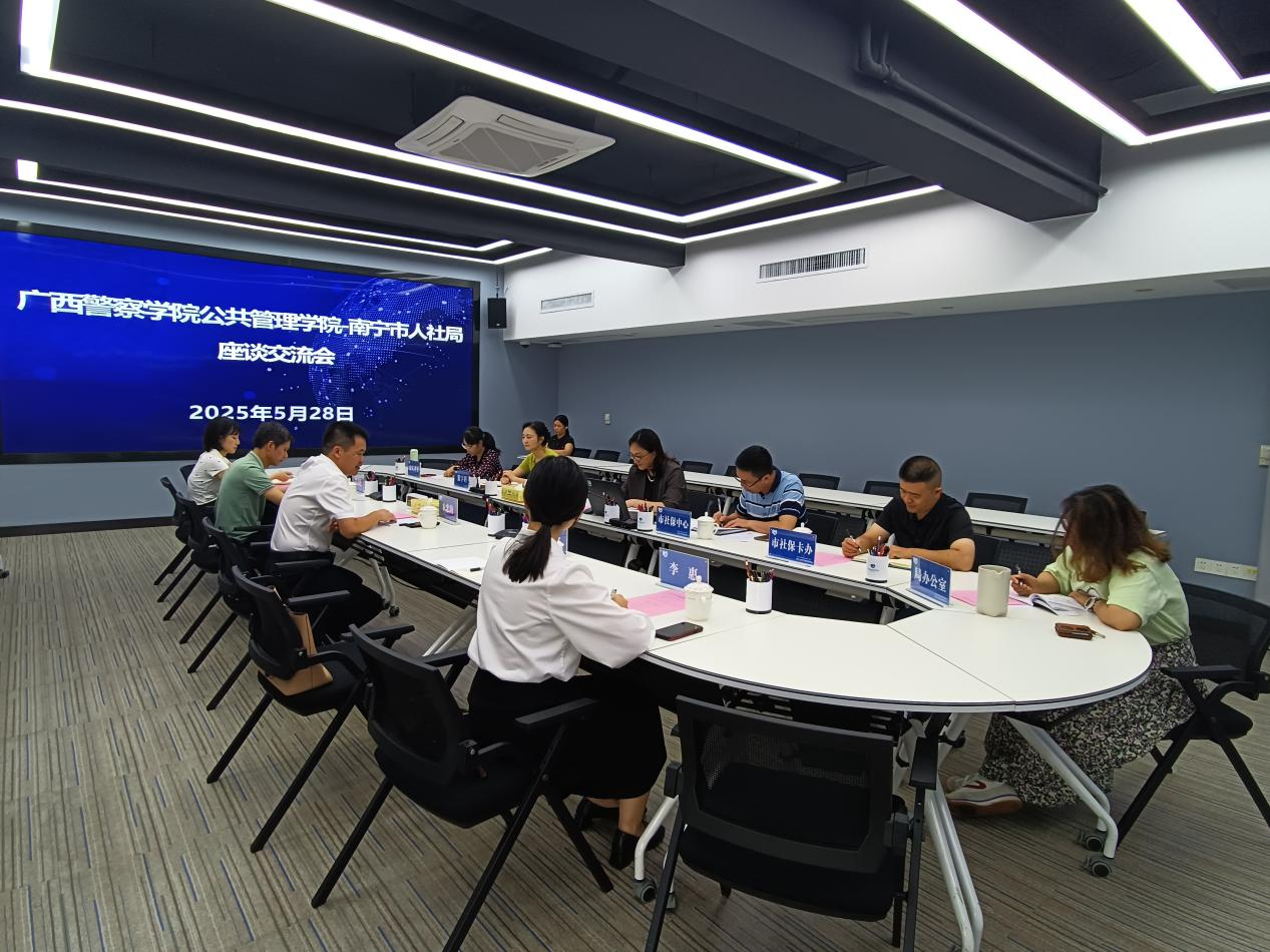 座谈会上,双方就校局合作路径展开探讨。农副院长提出,希望依托南宁市人社局的实践平台,共建学生实习基地、联合开展课题研究,将智慧人社的典型案例融入城市管理专业课程设计,推动产学研深度融合。南宁市人才办农惠琳对此积极响应,表示将协同推进毕业生就业、招聘服务与高校人才培养的精准对接,给予专业的指导和服务支持。