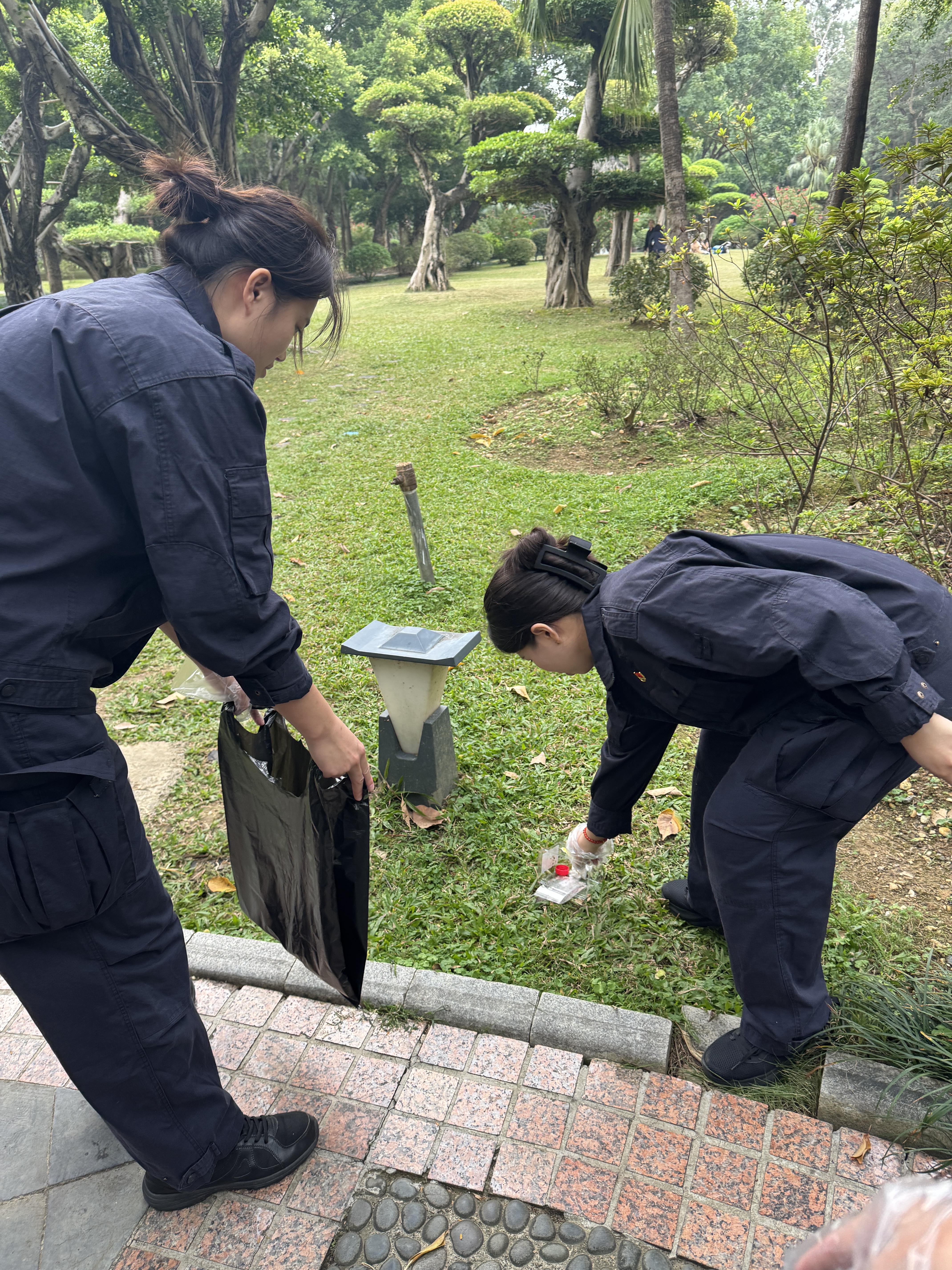 参观结束后,志愿服务环节有序开展。师生党员们分组行动,以饱满的热情投入到公园环境清理工作中,重点对革命烈士纪念碑周边、步道、草坪等区域的白色垃圾、落叶、杂物等进行全面清理。