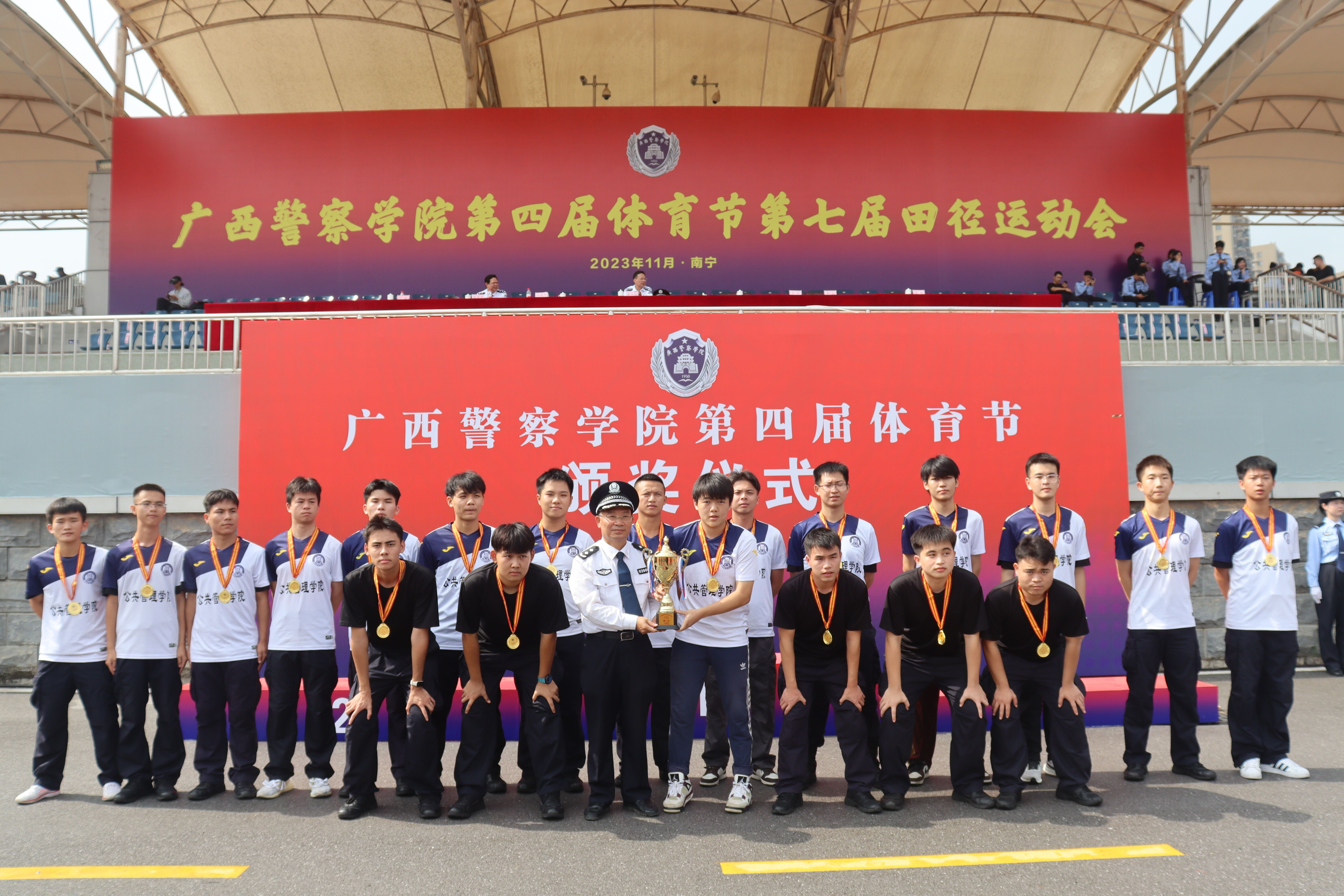 在本次体育节中,我院提出了“团结拼搏、公管争先、以赛迎评、勇创佳绩”口号,组织了170名运动员参赛。运动员们努力拼搏,团结协作,赛出了水平,赛出了风格,充分展现了我院学子朝气蓬勃的精神风貌,在团体综合赛事中,不仅再次蝉联男子气排球、男女混合16×60米迎面接力赛冠军,还首次获得五合男子足球冠军,乒乓球混合团体比赛、男子鱼贯跳绳和女子鱼贯跳绳比赛均收获亚军;在个人赛事上也有不少亮点,如21级行政管理三区的袁乐斌、杨宏宇两位同学分别赢得男子武术散打75公斤和85公斤的冠军,22级行政管理二区的覃宏玲同学获得女子100米决赛第一名等。运动员们表现出色、赛事组织到位,我院最终获得了团体总分第三名和体育道德风尚奖的优异成绩!