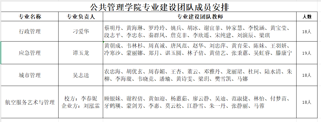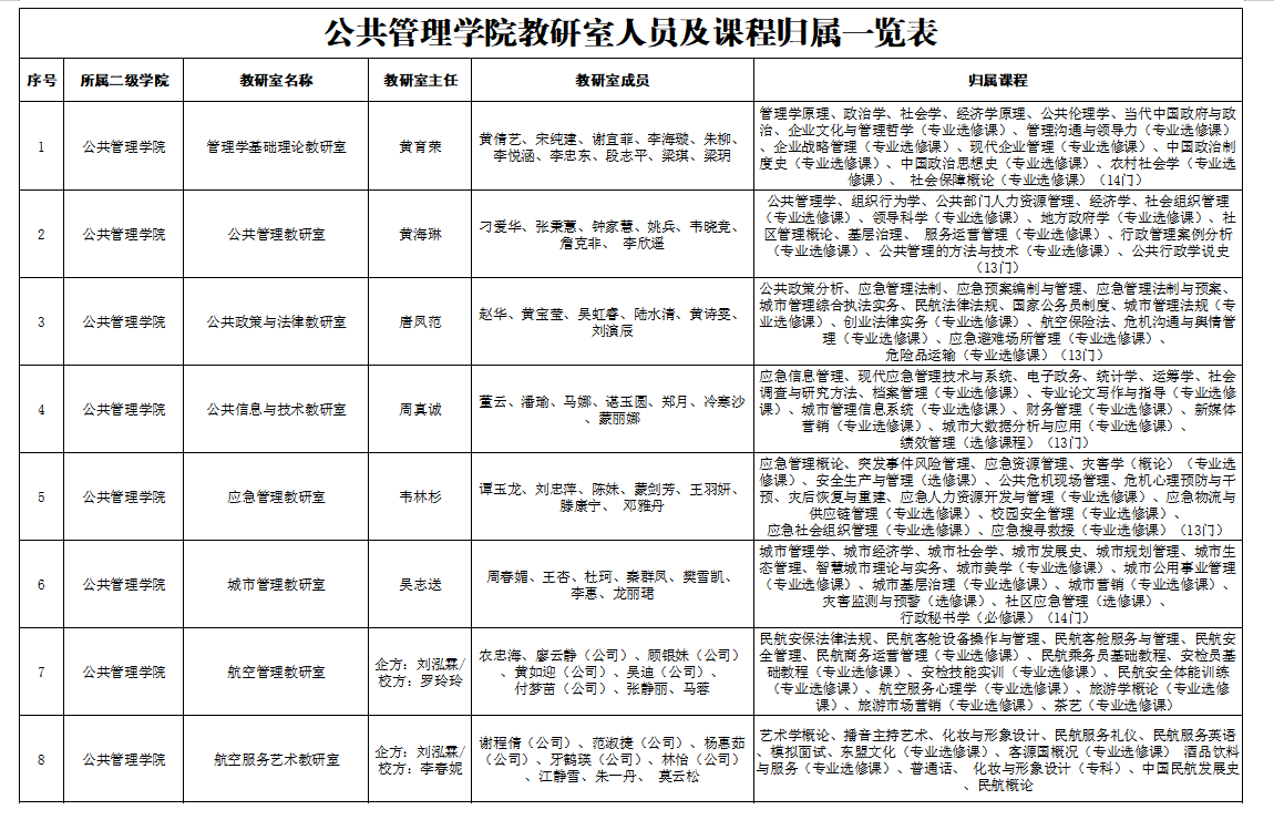 公共管理学院教研室人员及课程归属一览表