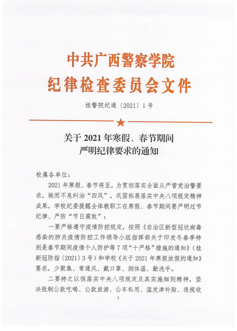 关于寒假、春节期间严明纪律要求的通知