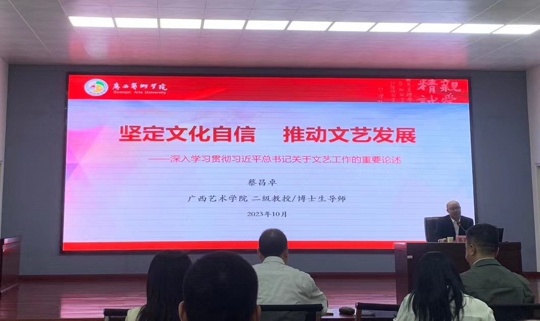 首先,美育中心毛茂林副主任在培训班上详细解读了美育的相关文件,毛主任从“大方向”和“小细节”上该如何做、怎么做、如何做好等角度做了专题报告;培训班还安排了十场美育讲座,主讲教师将自己多年的教学经验与大家分享;座谈会上各位教师轮流发言,报告各自学校美育建设的发展现状(优势和不足),以及今后的发展方向;最后,广西艺术学院蔡昌卓书记(美育中心主任)以国家政策、自身经历、艺术作品等形式,鲜活生动的总结本次美育研讨会,并对教师提出了三点希望:1、希望大家坚持以习近平总书记关于文艺工作重要论述为指引,坚持文化自信,用形式多样的文艺作品传播民族精神,推动社会主义文艺繁荣兴盛。2、希望大家志存高远,守正创新,坚持以人民为中心的文艺创作方向,努力创作出人民满意的艺术作品。3、希望大家忠诚党的教育事业,奉献人民艺术教育,扎根时代生活,遵循美育特点,弘扬中华美育精神,坚持以美育人,以文化人,提高广大青年学生审美和人文素养。