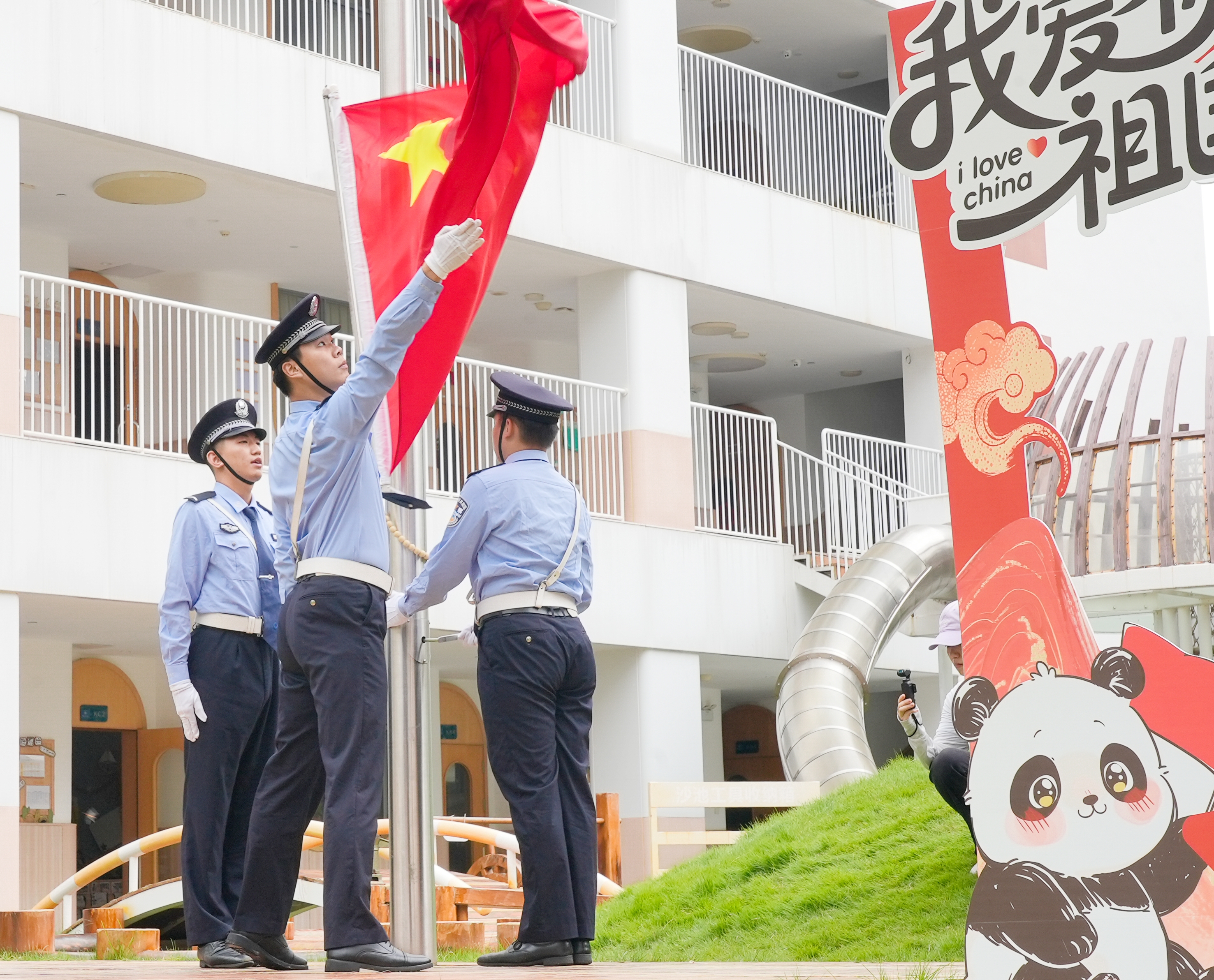 金秋送爽,丹桂飘香。9月30日,在南宁市美吉瑞幼儿园的诚挚邀请下,警务实战学院的学员们英姿飒爽地走进校园,为全体师生带来了一场庄严神圣的升旗仪式和一场精彩绝伦的警务技能战术表演。