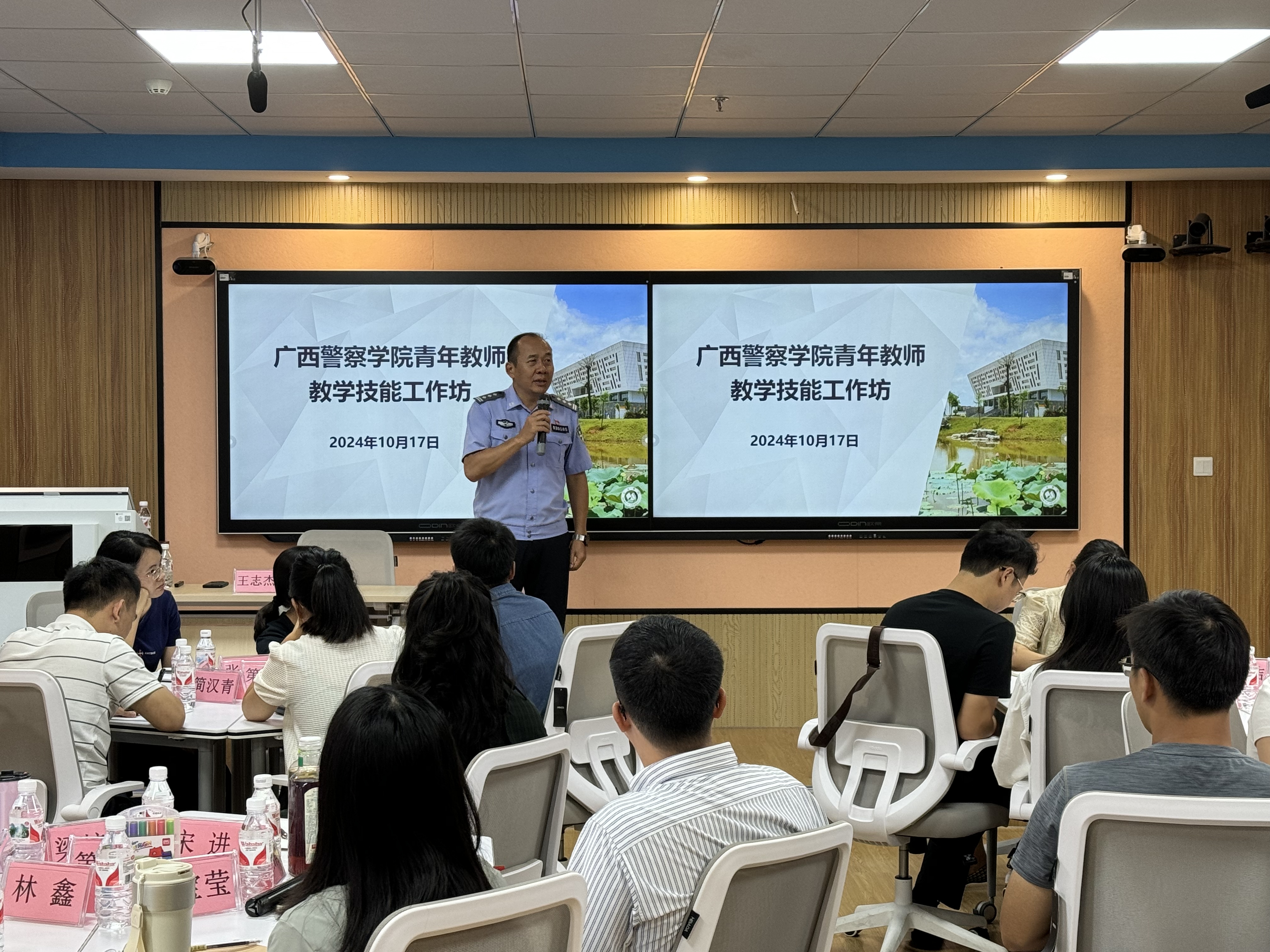 为全面深化新时代教师队伍建设改革,进一步提升学校青年教师教学能力,10月17日至20日,学校在仙葫校区教师发展中心成功举办首期青年教师教学技能工作坊。副校长李兴林到工作坊现场观摩指导并讲话。