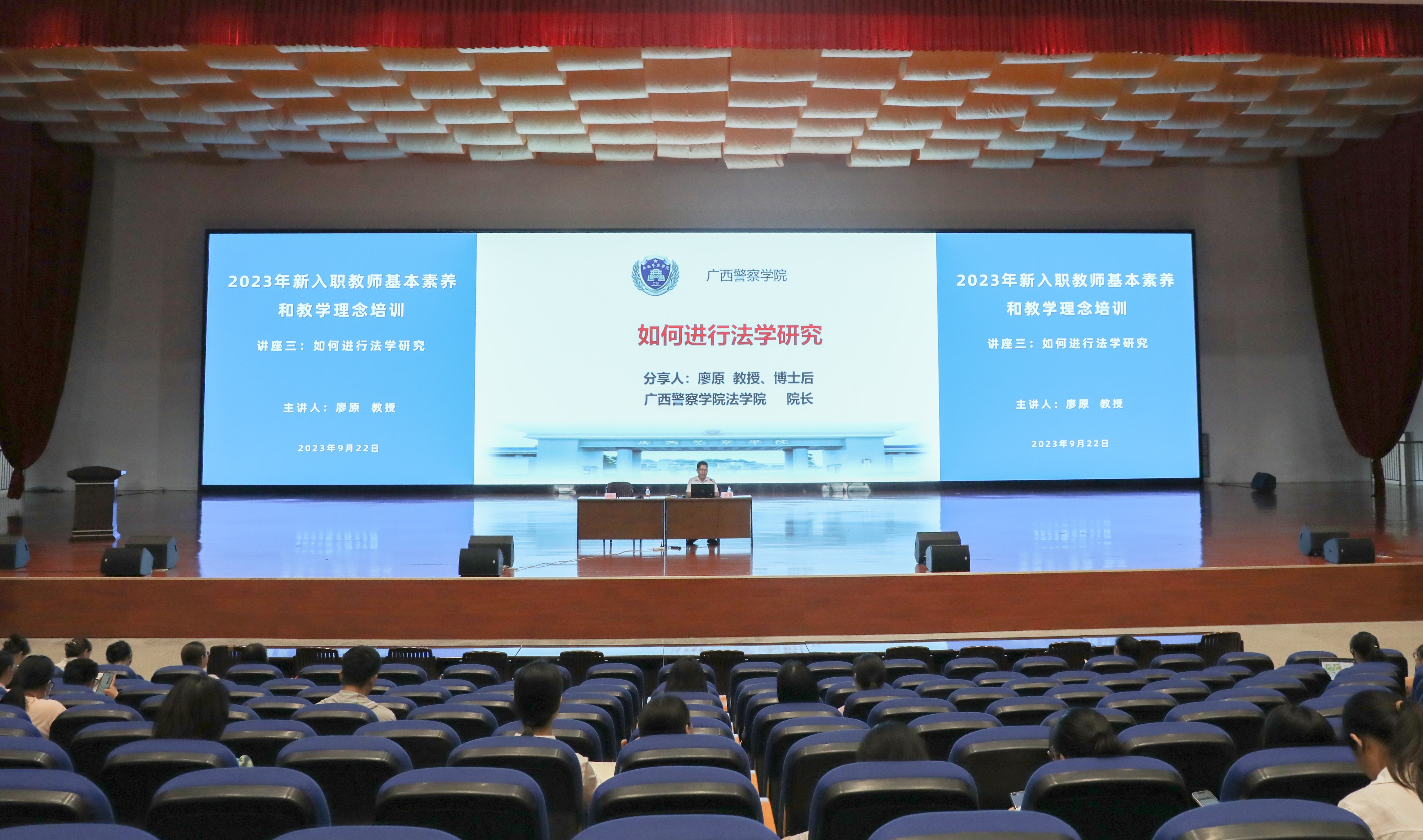本次培训共举办6场讲座,分别是学校校长张军教授主讲的《新入职教师职业生涯规划》,副校长谢鹏主讲的《努力成为一名好老师》,法学院院长廖原教授主讲的《如何进行法学研究》,期刊编辑部主任陈华教授主讲的《学术论文写作规范与投稿技巧》,信息技术学院副院长蒋萍教授主讲的《广西自然科学项目申报经验分享》,法学院副院长郭丽萍副研究员主讲的《高校青年教师的成长》。各专题讲座的主讲人结合学校实际和自身丰富经验,悉心讲授并分享经验,为新入职教师的教学生涯和职业发展引路导航。