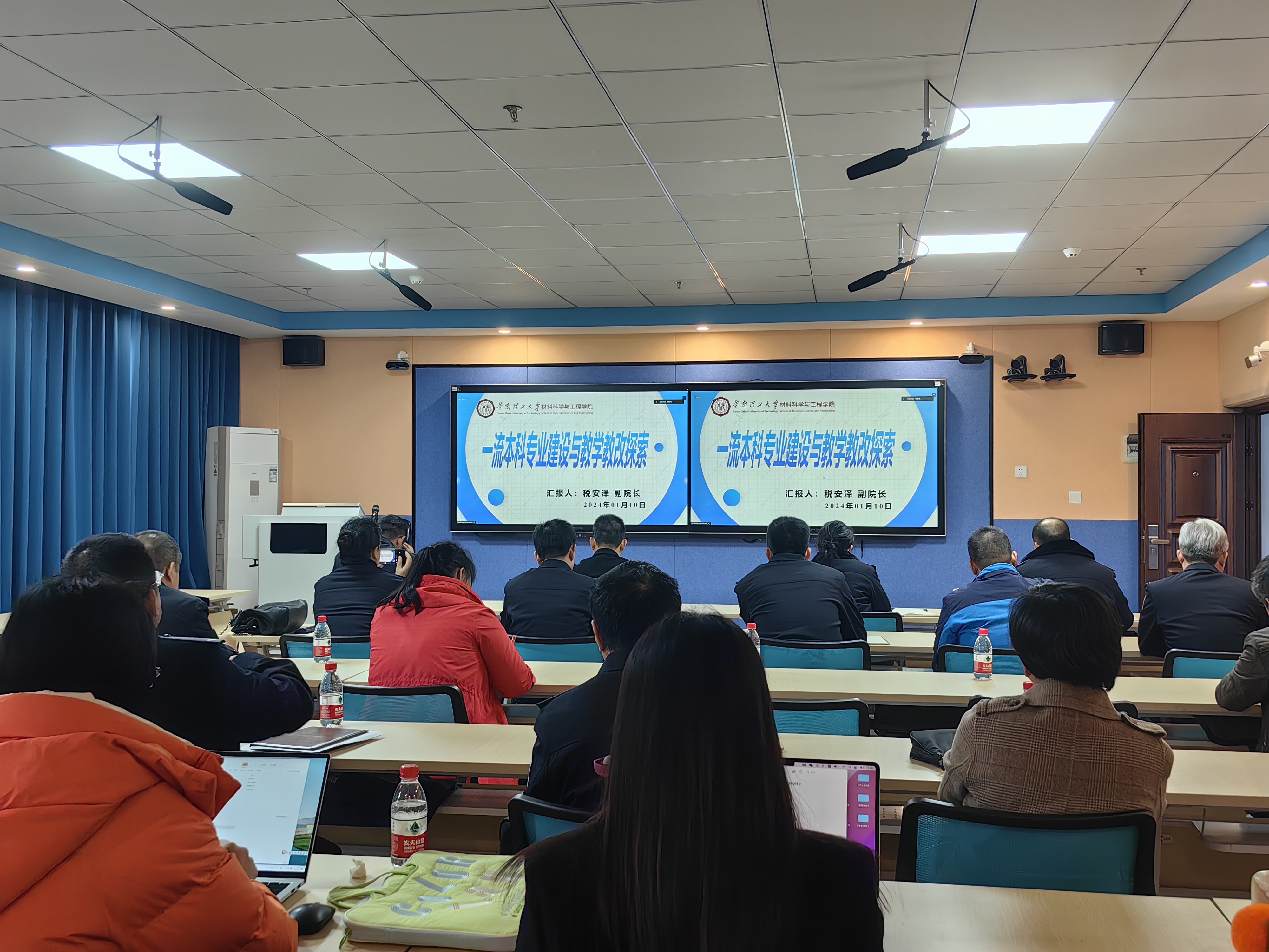 根据自治区教育厅工作安排, 2024年1月10日下午,教务处组织学校教师在仙葫校区教学主楼六楼教师发展中心会议室参加第二期粤桂高校一流本科专业建设交流视频会。此次培训由华南理工大学材料科学与工程学院副院长税安泽教授、广州大学管理学院副院长王学通教授、暨南大学新闻与传播学院院长杨先顺教授、广东技术师范大学机电学院周莉教授分别进行专题报告。各二级学院分管教学副院长和本科专业带头人参加此次交流会。