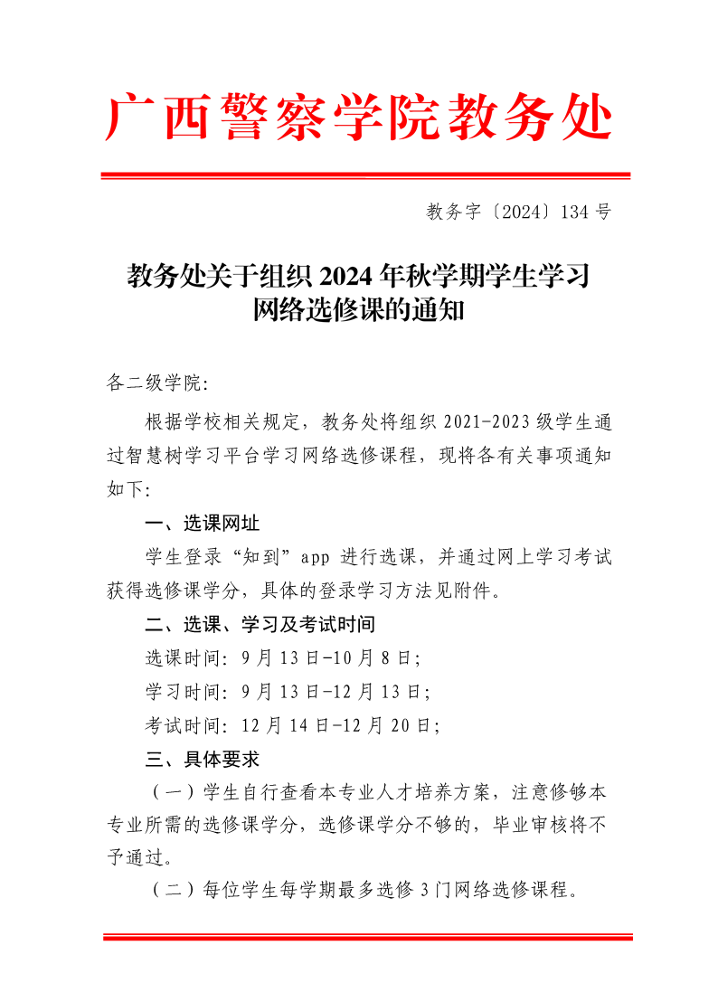 教务处关于组织2024年秋学期学生学习网络选修课的通知