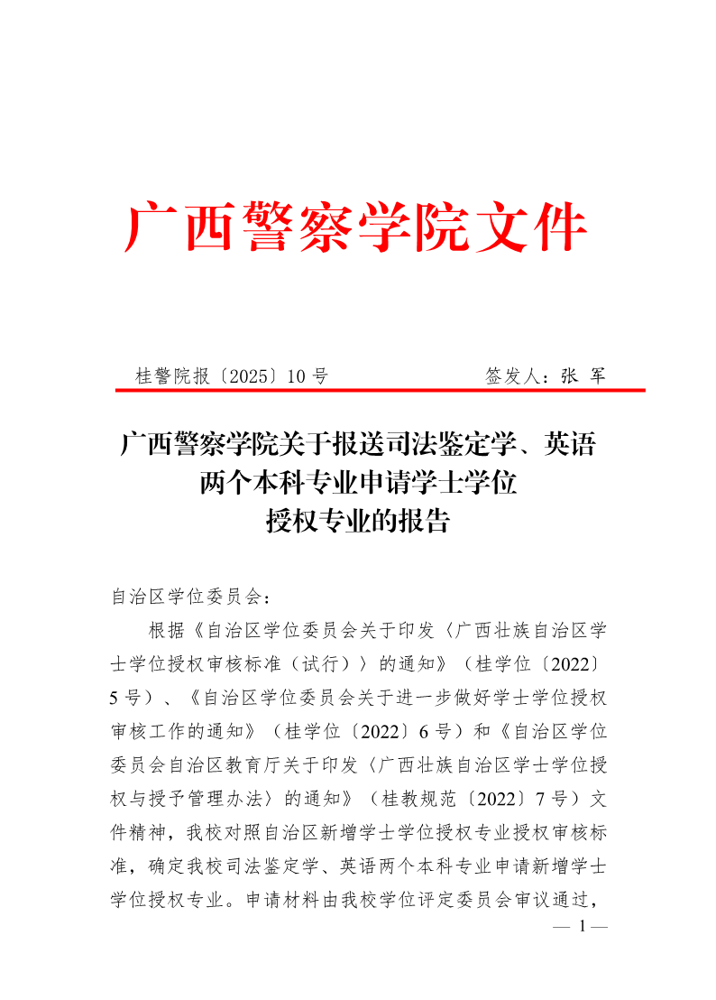 拟新增学位授权学科或专业学位授权点的申报及论证材料 来源: 发布时间:2025-10-31 16:59:11 浏览次数: 次 【字体:小 大】 司法鉴定学-申请学士学位授权专业简况表.pdf英语-申请学士学位授权专业简况表.pdf 分享到: 【打印正文】