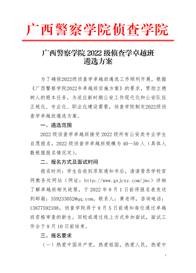 beat365唯一官方网站2022级侦查学卓越班遴选方案