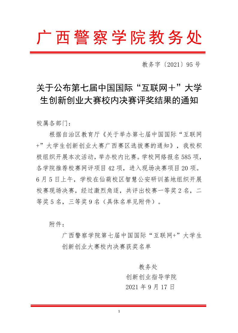 关于公布第七届中国国际“互联网+”大学生创新创业大赛校内决赛评奖结果的通知