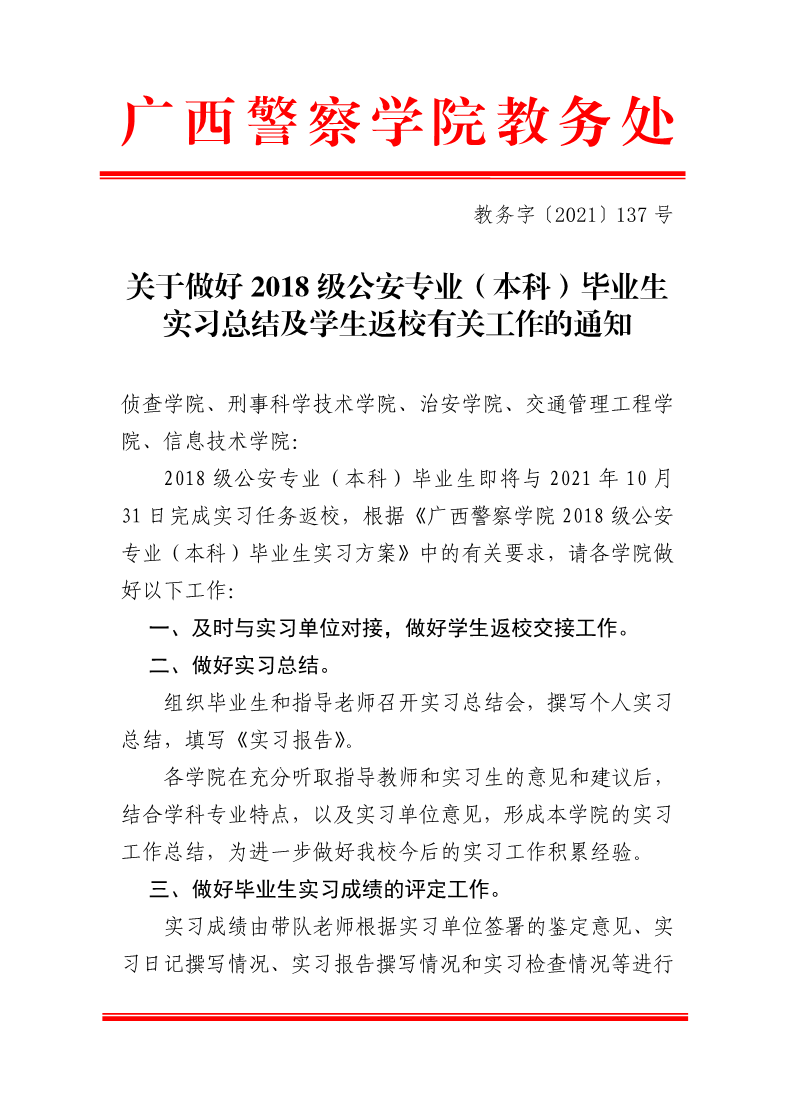 关于做好2018级公安专业(本科)毕业生实习总结有关工作的通知