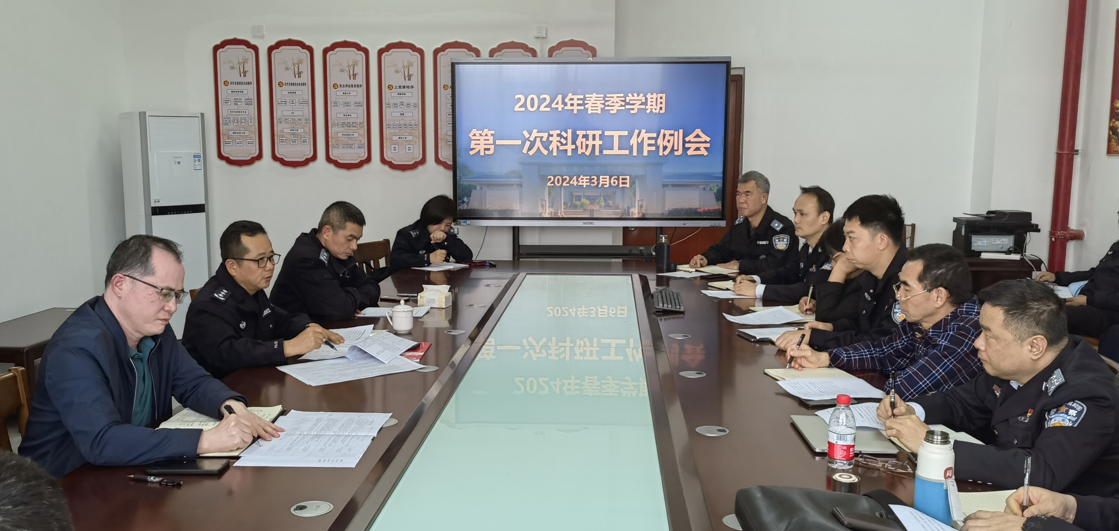 会上,张军同志作了讲话,要求各教学院部做好2024年科研工作规划,明确科研工作目标和任务,强调各教学院部要动员老师借助公安部依托学校成立的中国—东盟(广西)警学研究院这个国字号平台开展科学研究,力争科研工作取得新突破。