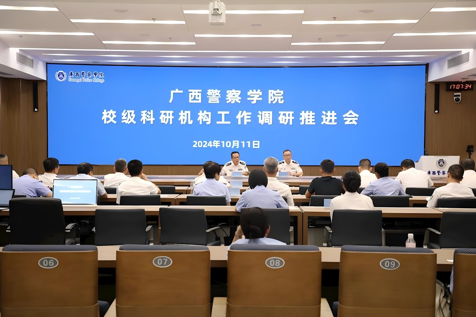 中国—东盟(广西)警学研究院和14个校级科研机构、3个立法咨询机构,科研处、财务处、审计处相关人员参加会议。