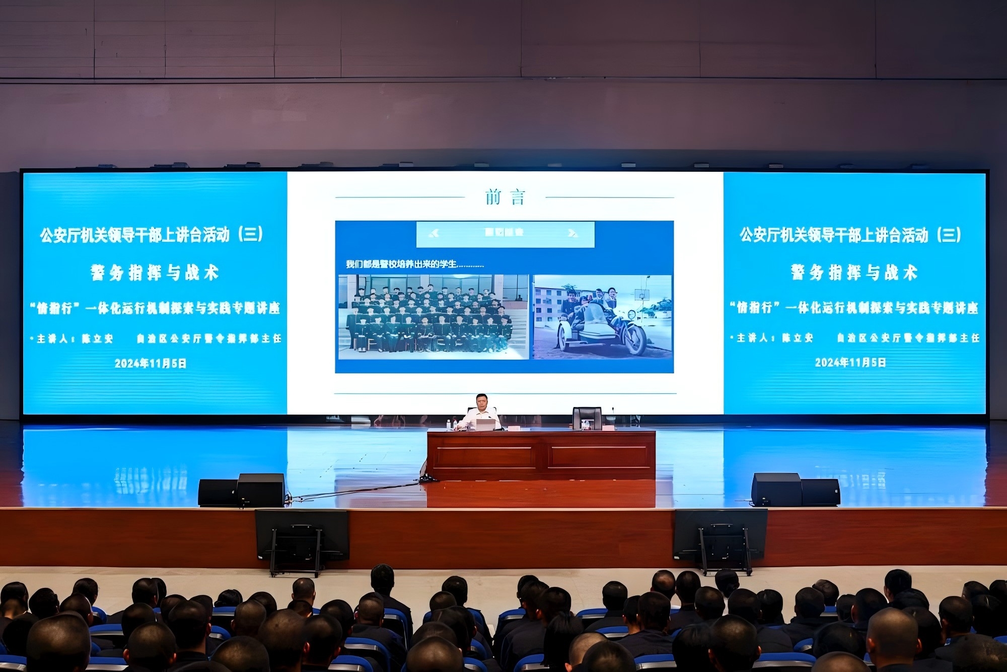 11月6日,自治区公安厅机关领导干部上讲台系列活动第三期在仙葫校区学术报告中心开讲,自治区公安厅警令指挥部主任陈立安受邀到beat365官网开展警务指挥专题讲座。