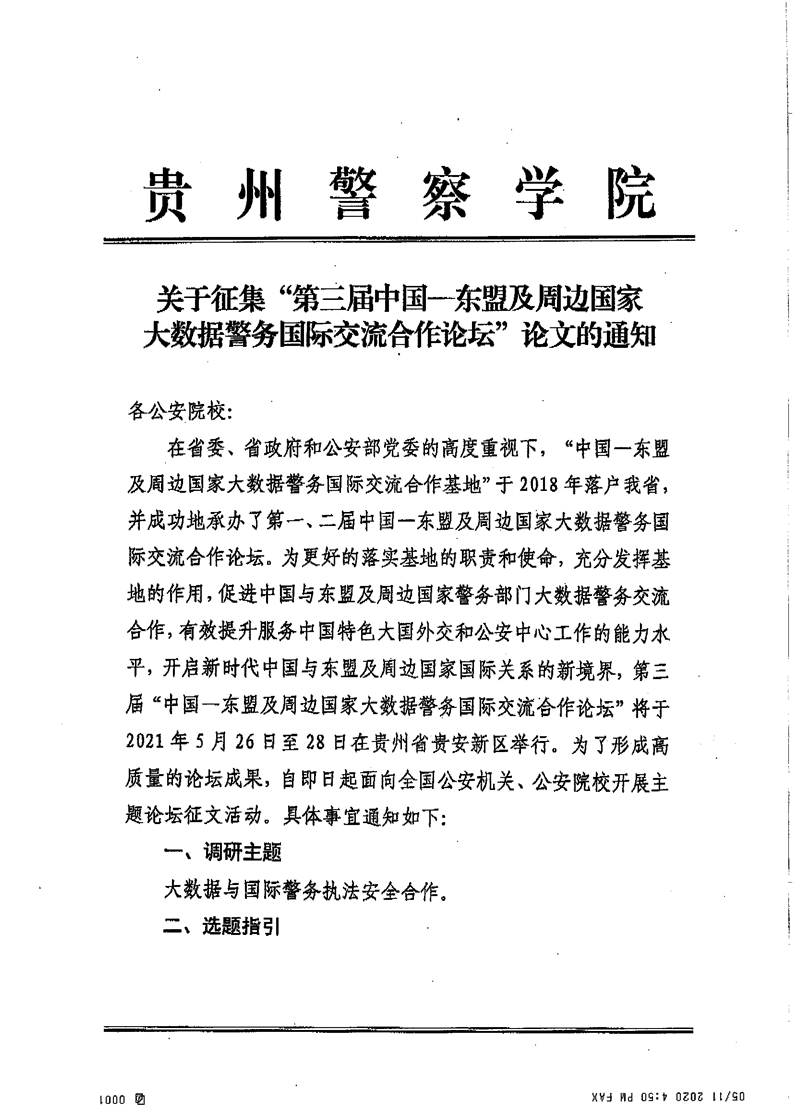 贵州警察学院 关于征集“第三届中国-东盟及周边国家大数据警务国际交流合作论坛”论文的通知 来源: 发布时间:2021-04-07 09:00:51 浏览次数: 次 【字体:小 大】 智能标签: 贵州 警察 学院 征集 论文 分享到: 【打印正文】 相关内容