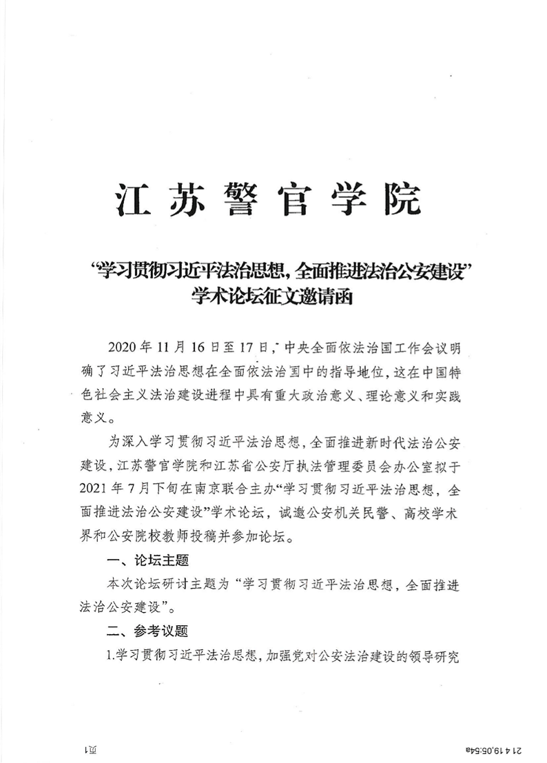 “学习贯彻习近平法治思想,全面推进法治公安建设”学术论坛行文邀请函 来源: 发布时间:2021-04-20 10:54:51 浏览次数: 次 【字体:小 大】 智能标签: 贯彻 习近平 法治思想 学术论坛 分享到: 【打印正文】 相关内容