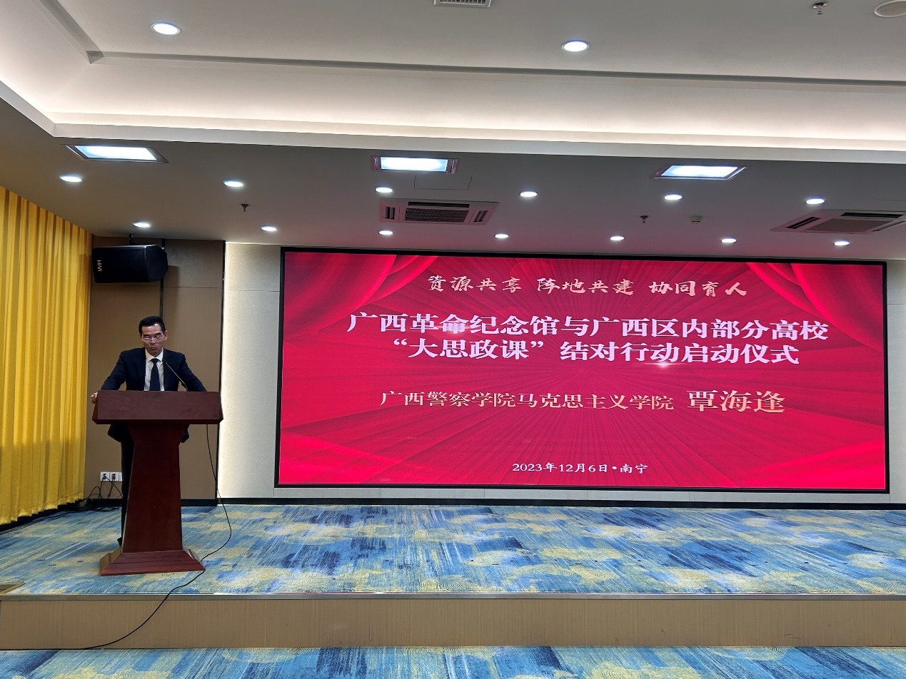 为传承红色基因,赓续共产党人精神血脉,弘扬伟大建党精神,12月6日,广西革命纪念馆与广西区内11所高校开展“大思政课”结对行动,自治区退役军人事务厅和各个院校相关领导出席仪式。我院直属党支部书记覃海逢出席本次启动仪式,与广西革命纪念馆签订了共建“大思政课”实践教学基地协议。