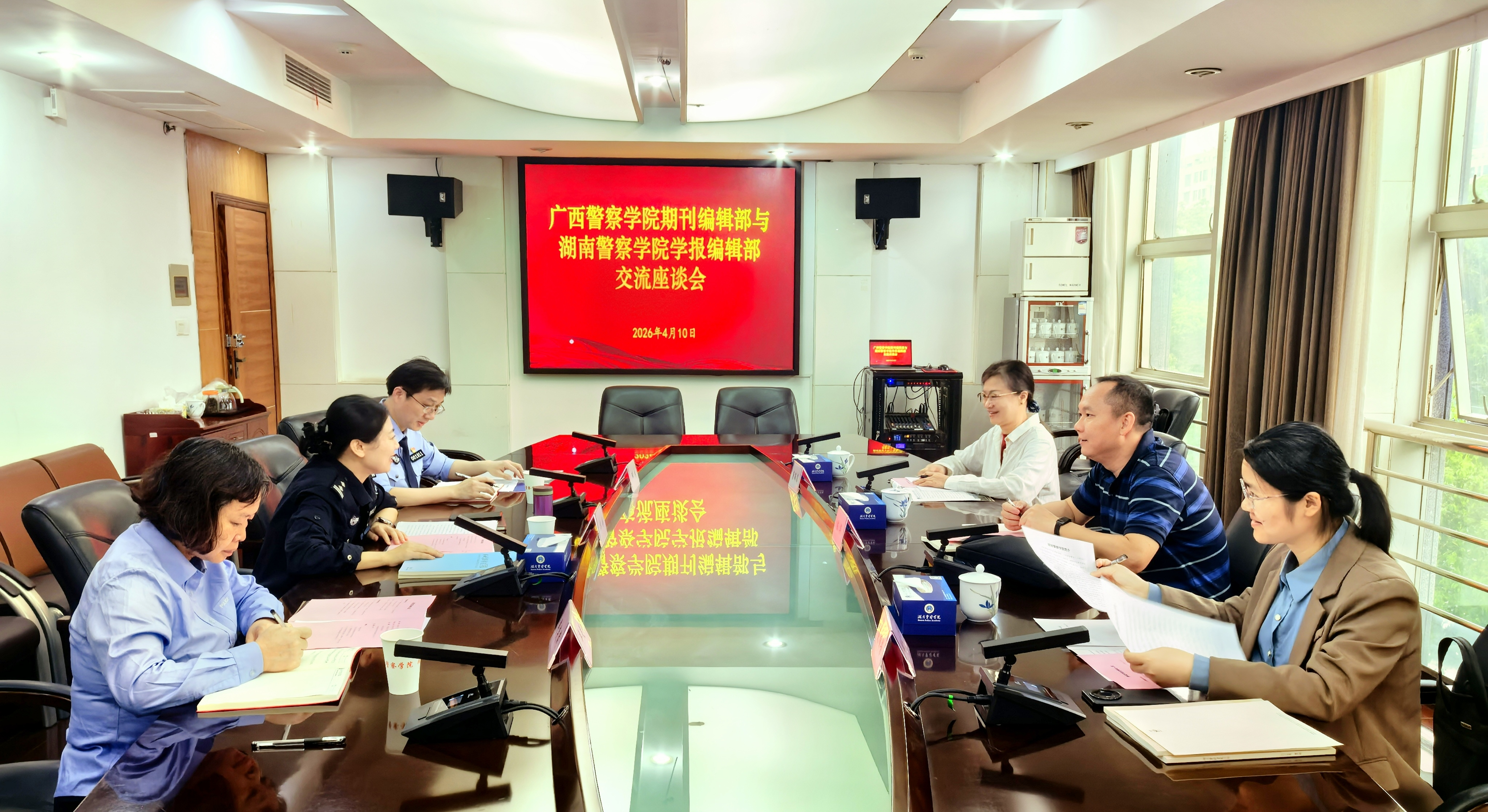 调研期间,双方围绕公安类学术期刊队伍建设、采编规范、工作流程、质量管理等方面进行了深入交流。湖南警察学院学报编辑部重点对青年编委队伍建设实践进行经验分享。双方还就如何加强合作交流、实现资源共享等问题达成共识。