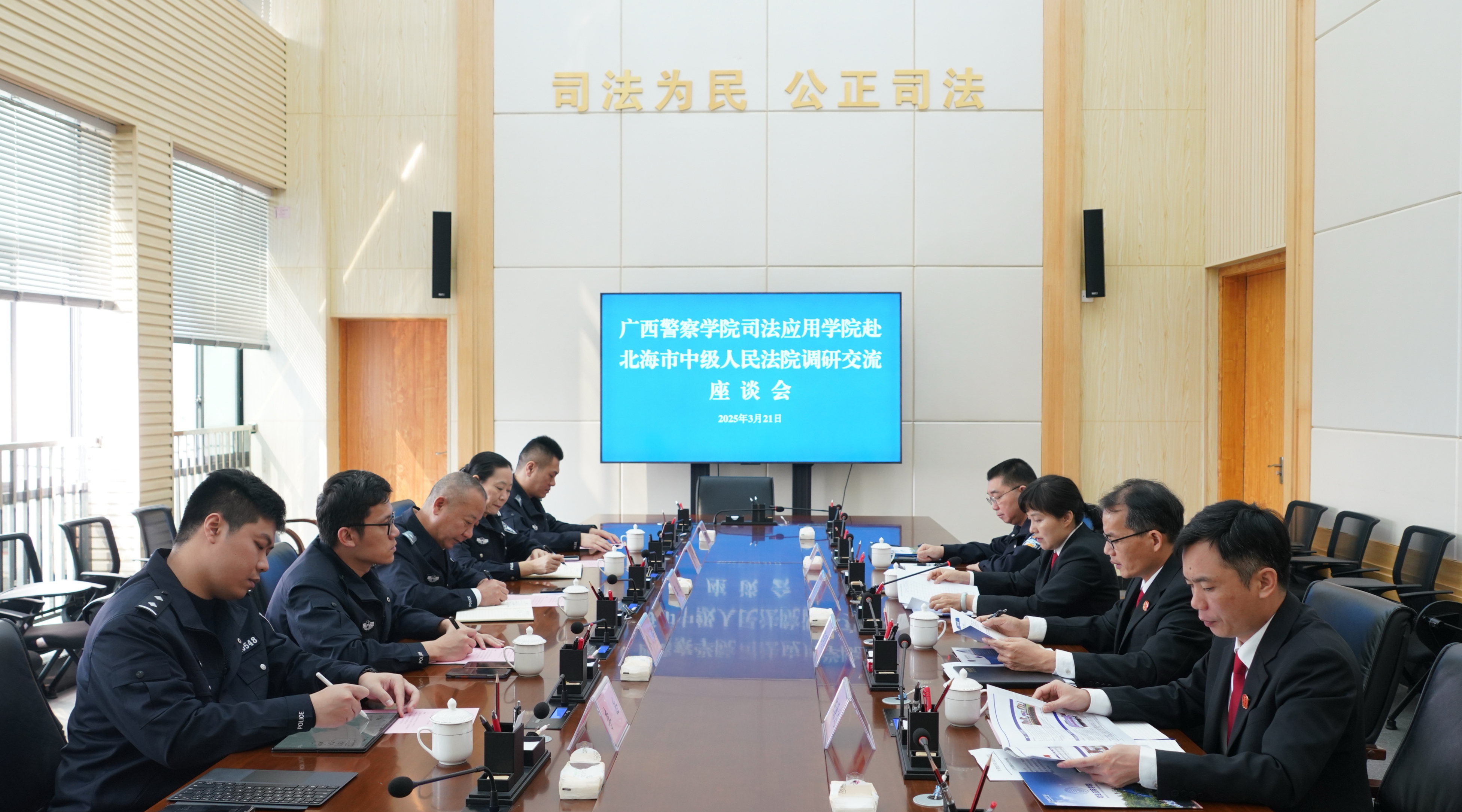 为深入贯彻落实党中央、国务院关于高校毕业生就业工作的决策部署,拓宽就业渠道、挖掘岗位资源,同时推进党建与思政教育工作的深度融合,近日,司法应用学院党总支书记王洪、副书记兰岚、副院长廖炜、团委副书记莫明智以及专任教师李岳一行,先后赴北海市中级人民法院、北海市公安局反恐支队、北海市人民检察院及北海监狱开展访企拓岗调研活动,就有关议题与各单位座谈交流。