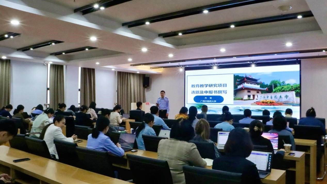 为提升教师教研能力,助力教学改革项目申报工作,4月8日上午,我院特邀广西中医药大学教授、教育学博士、硕士生导师方宝,在五合校区二号实训楼301教室举办“教育教学研究项目选题及申报书撰写”专题讲座。讲座由廖炜副院长主持,谢曼娜副院长、我院全体专任教师及法学院、外国语学院部分教师参加了讲座。