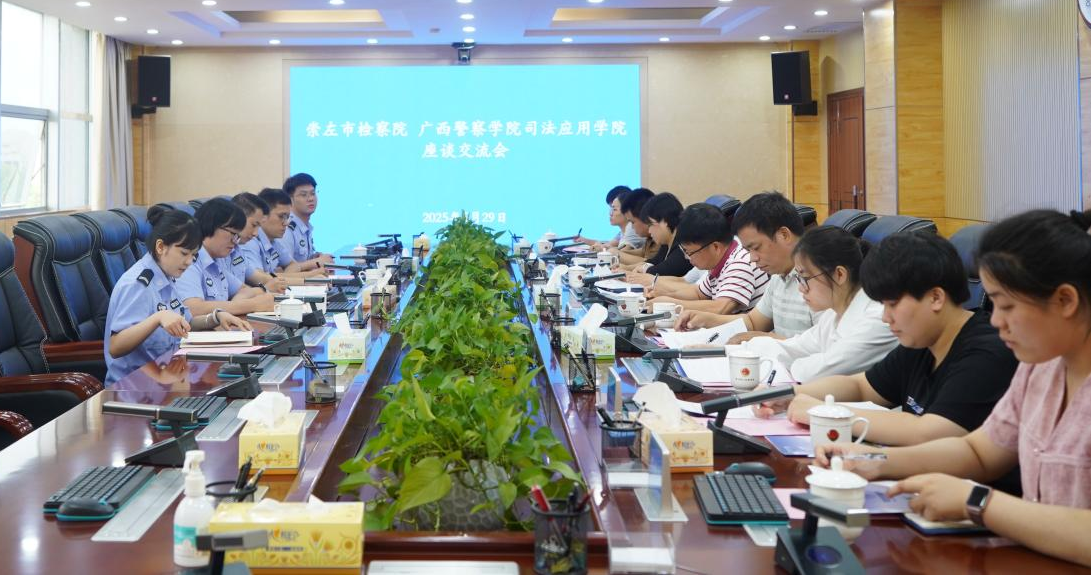 在与崇左市检察院的座谈交流中,双方重点围绕人才培养、课题研究、实践教学等方面进行了深入交流,表示愿意通过构建长效机制,实现政校双方优势互补、资源共享、共同发展,为培养更多适应地方政法工作需求的法律人才创造条件。崇左市检察院政治部主任杨武高对学院培养的学生给予了高度评价,希望学院学生到单位实习锻炼并留任,为地方政法工作注入新的活力。