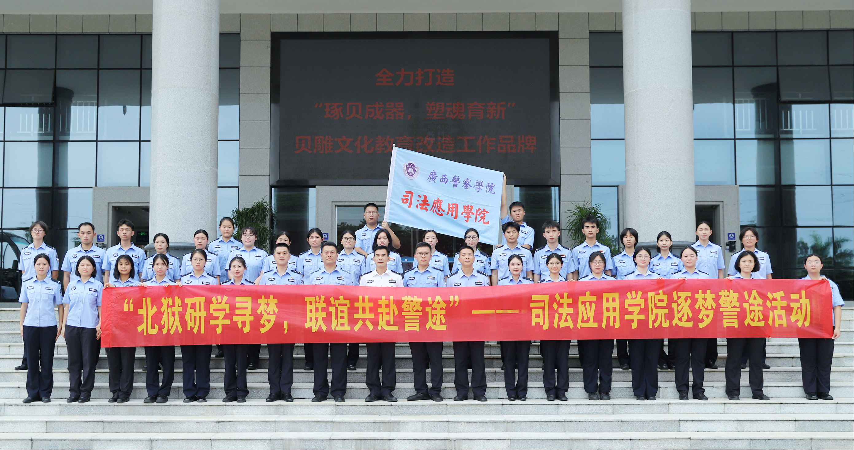 7月10日,我院副院长廖炜率师生代表团赴北海监狱开展“研学寻梦+联谊共建”实践活动。北海监狱党委书记、监狱长李春萌,党委委员、政治部主任覃杨峻参加活动。