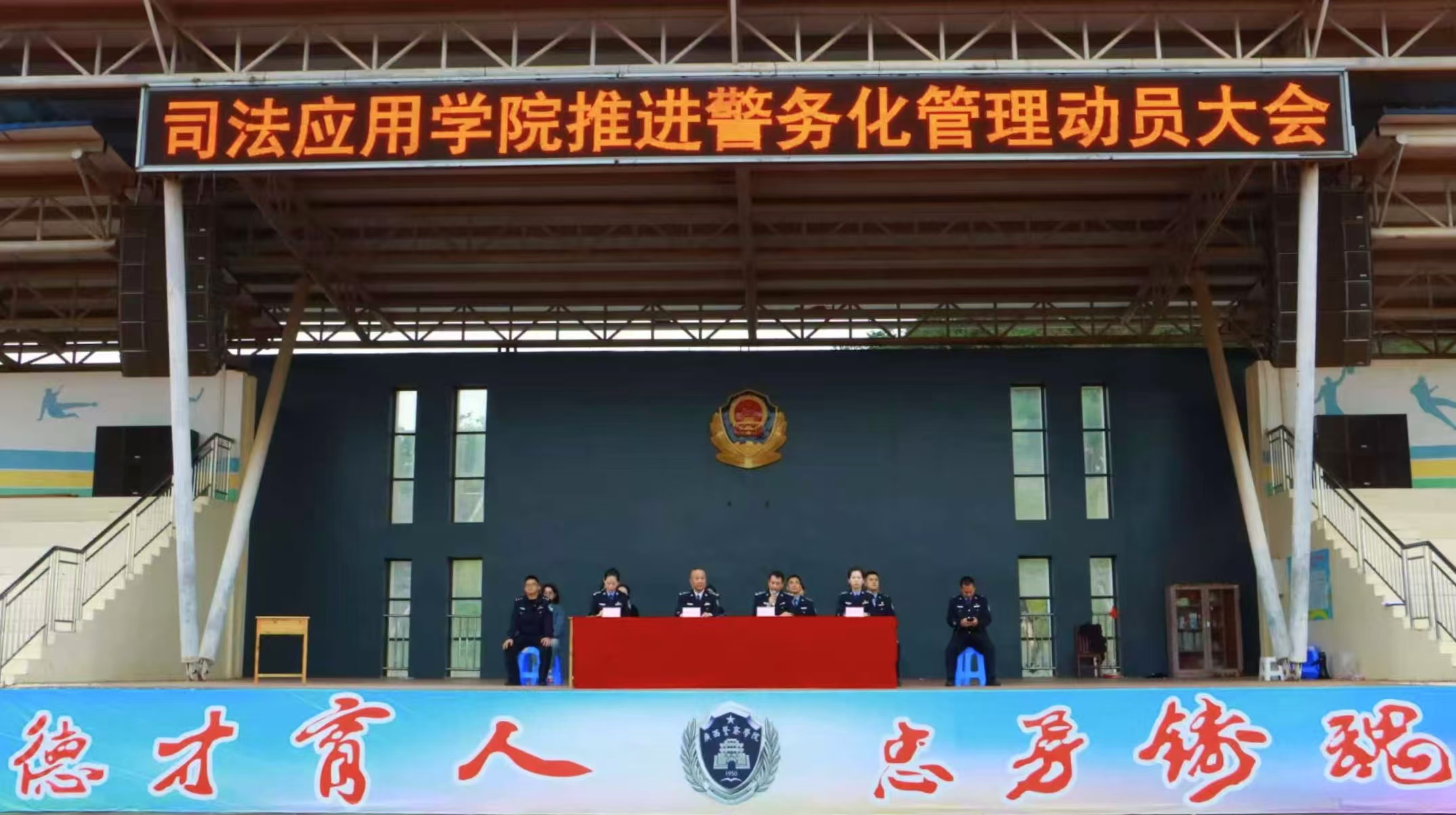 2025 年 11 月 11日15时,beat365唯一官方网站司法应用学院在五合校区田径场举行推进警务化管理动员大会。学院领导、全体辅导员及全体在校学生参加本次大会,共同推进警务化管理的深入实施。党总支副书记兰岚主持大会。