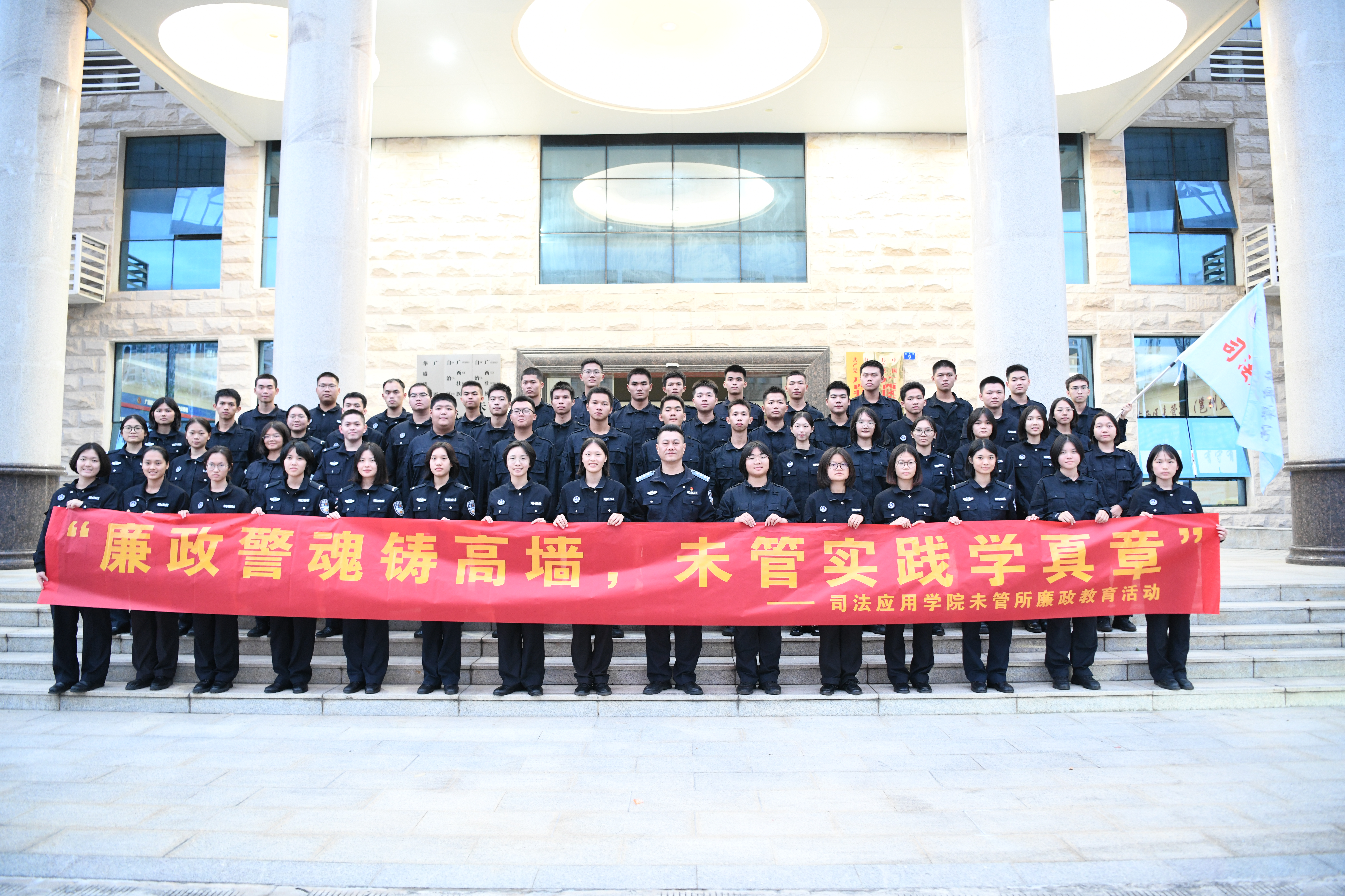 为深化理想信念教育、青年政治骨干培养与廉政警示教育实效,2025年11月11日,司法应用学院开展系列主题活动,组织师生党员、青马班学员共59人,赴广西壮族自治区未成年犯管教所开展沉浸式实践教育,引导全体人员特别是学生党员干部在一线锤炼党性、筑牢忠诚。