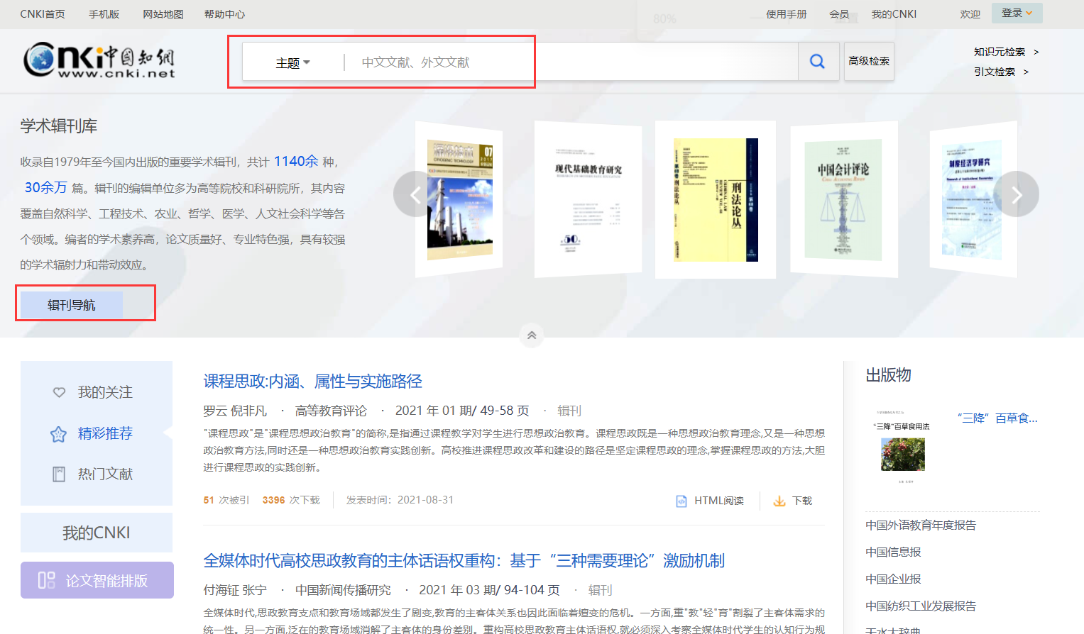 CNKI学术辑刊、年鉴、经济社会大数据研究平台等模块使用说明
