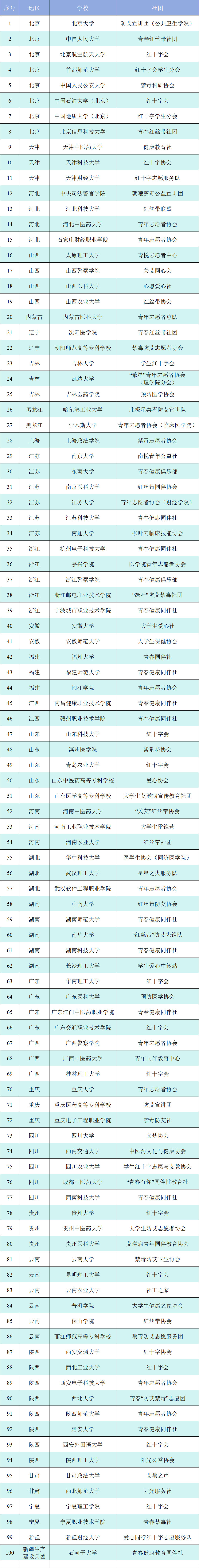 beat365官网青年志愿者协会荣获共青团中央联系、培养的高校学生禁毒防艾百大社团,入围名单如下: