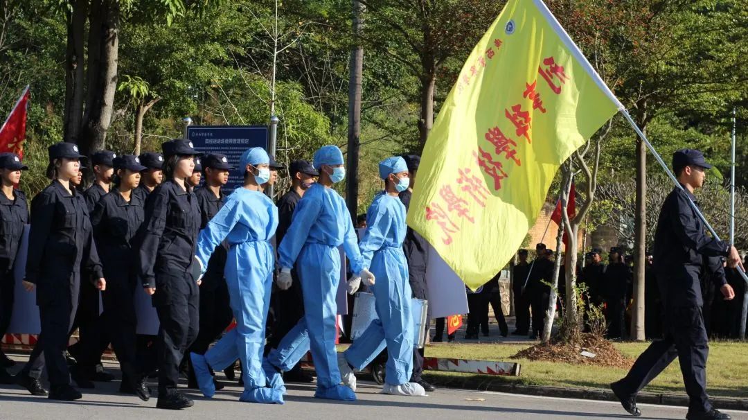 国旗护卫队步伐整齐、身姿挺拔;警旗警徽会标方队神采飞扬、熠熠生辉;红旗方队热血沸腾、昂首阔步,展示了警院学子英姿飒爽、昂扬向上的精神风貌。