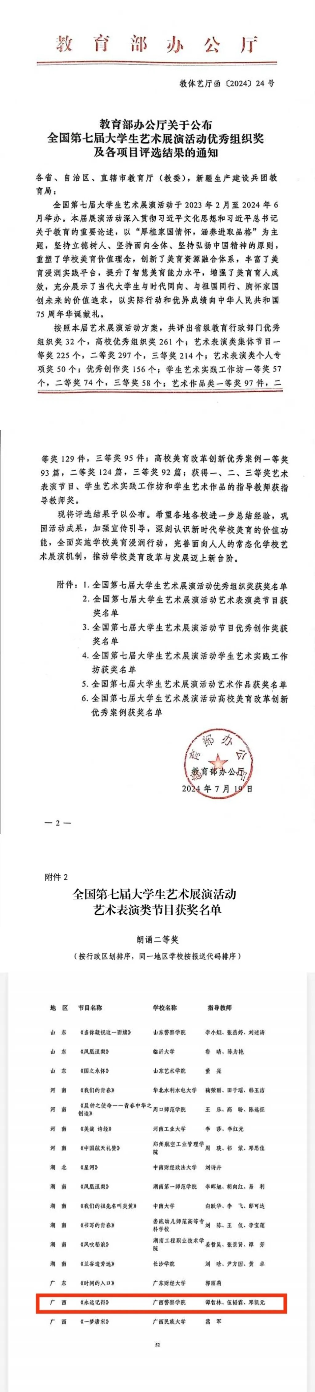全国第七届大学生艺术展演活动优秀组织奖及各项目评选结果公布啦