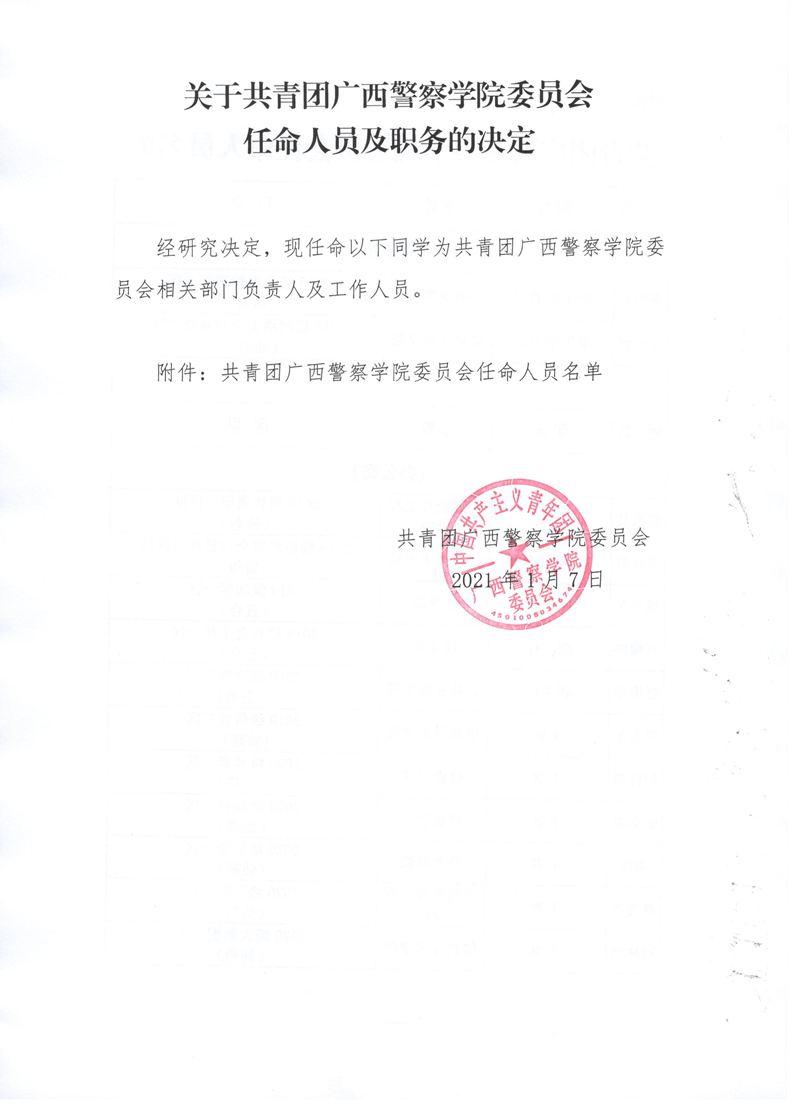 关于共青团beat365唯一官方网站委员会任命人员及职务的决定