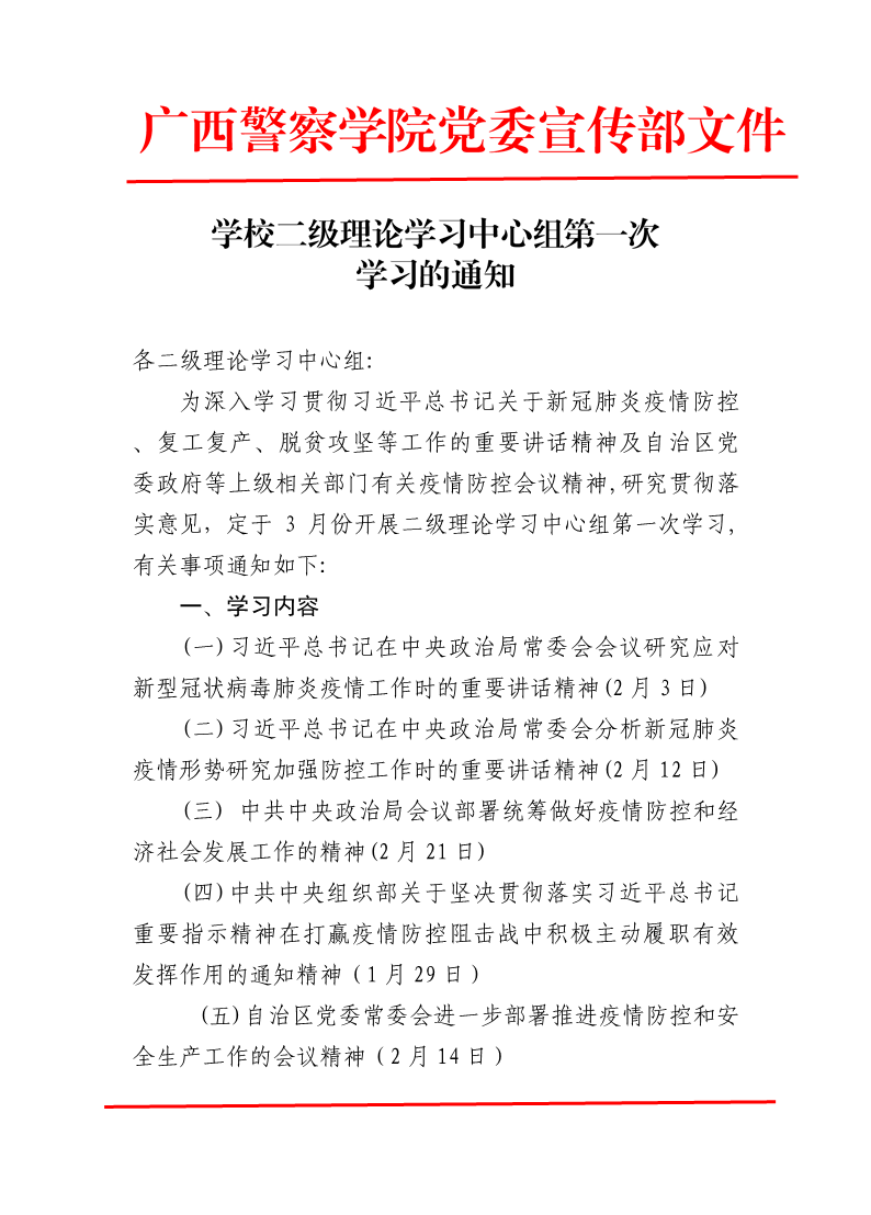 学校二级理论学习中心组第一次学习的通知