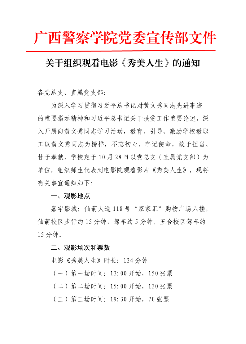 关于组织观看电影《秀美人生》的通知