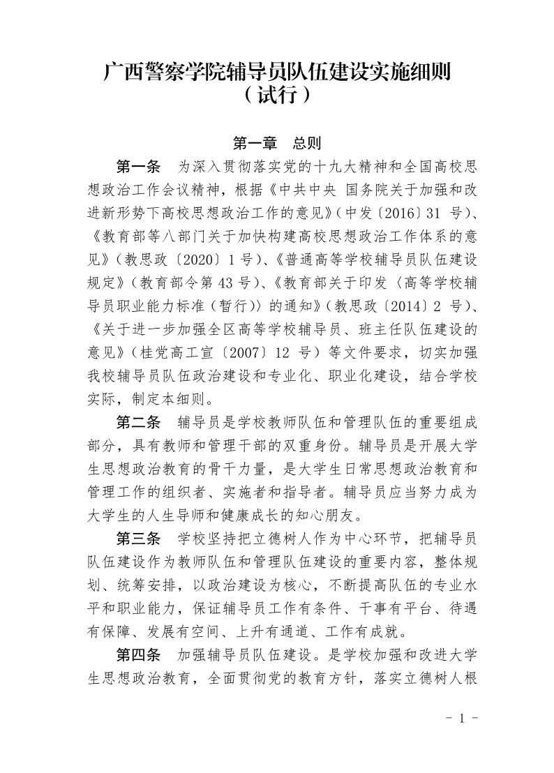 beat365唯一官方网站辅导员队伍建设实施细则(试行)