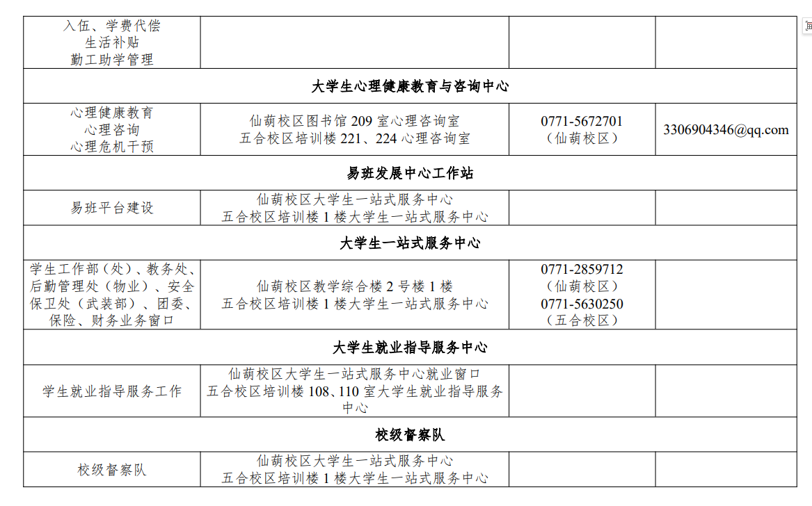 学生工作部(学生工作处、招生就业指导中心、资助中心、心理健康教育与咨询中心)