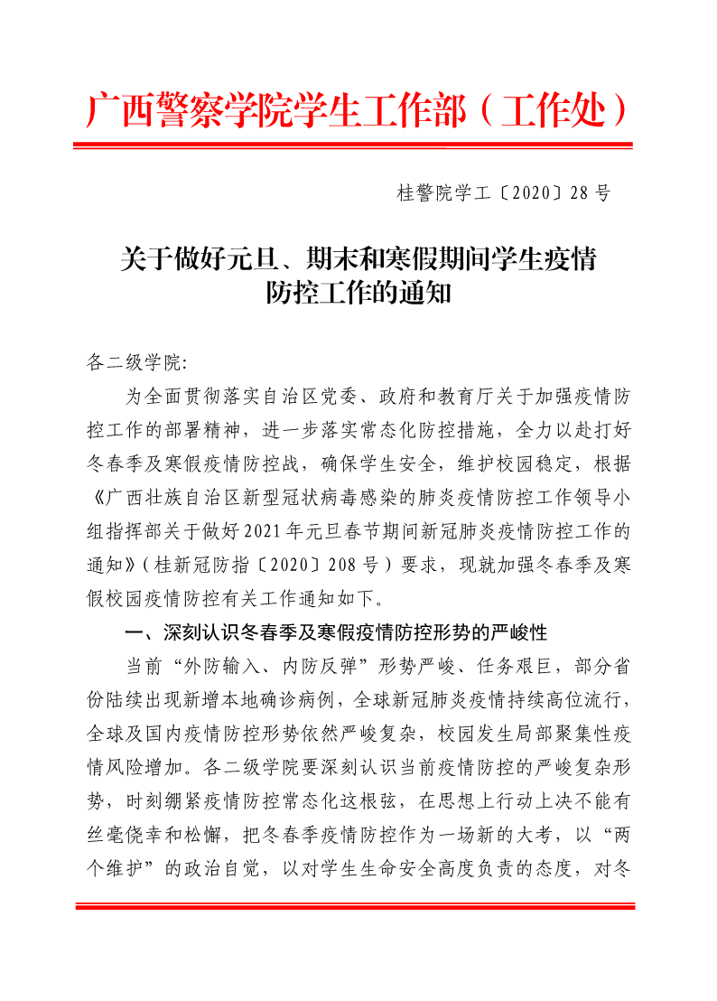 关于做好元旦、期末和寒假期间学生疫情防控工作的通知