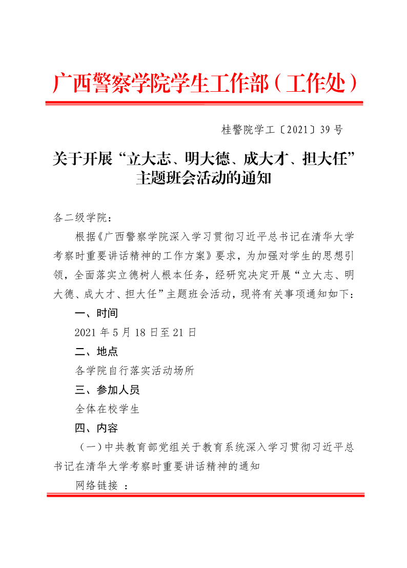 关于开展“立大志、明大德、成大才、担大任”主题班会活动的通知