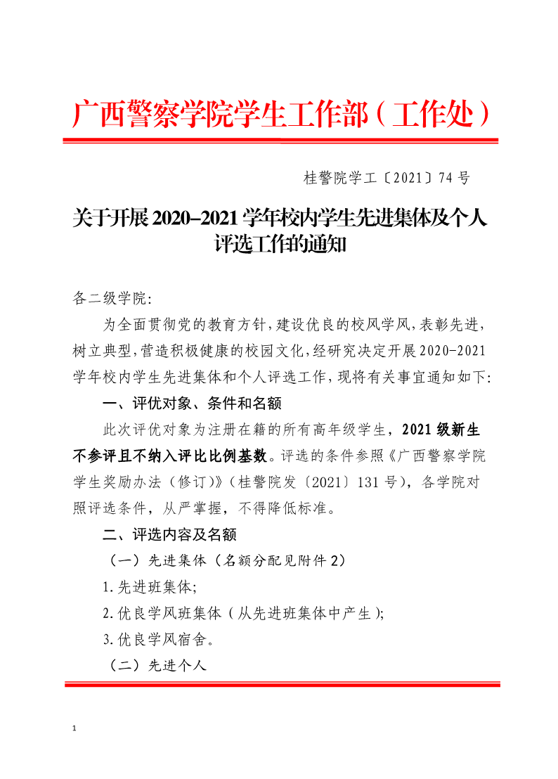 关于开展2020-2021学年校内学生先进集体及个人评选工作的通知