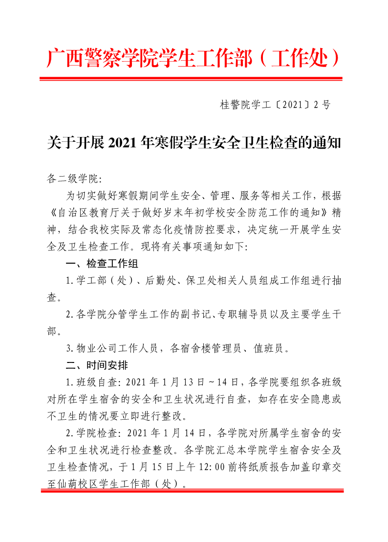 关于开展2021年寒假学生宿舍安全卫生检查